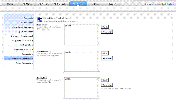 Help desk loguje się do ADManager Plus - -> Kliknij zakładkę Przepływ pracy