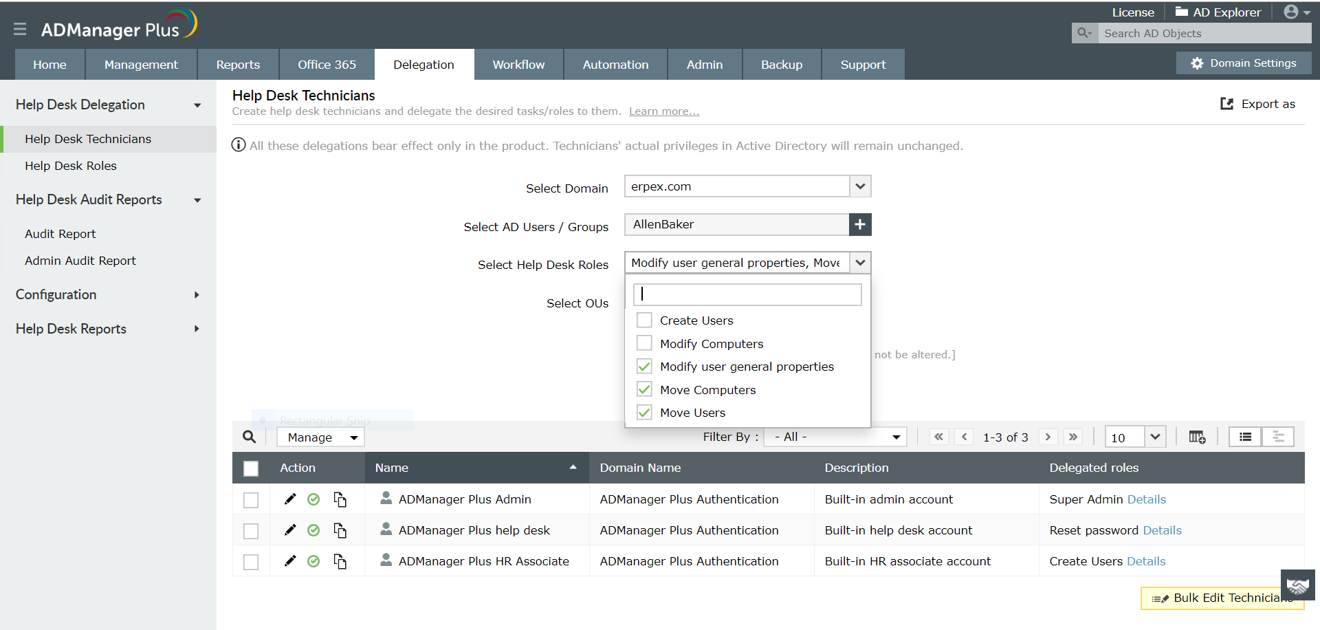 ADManager Plus pozwala na delegowanie zadań administracyjnych Active Directory na użytkowników niebędących administratorami na dwa proste, szybkie i bezpieczne sposoby, a mianowicie poprzez: