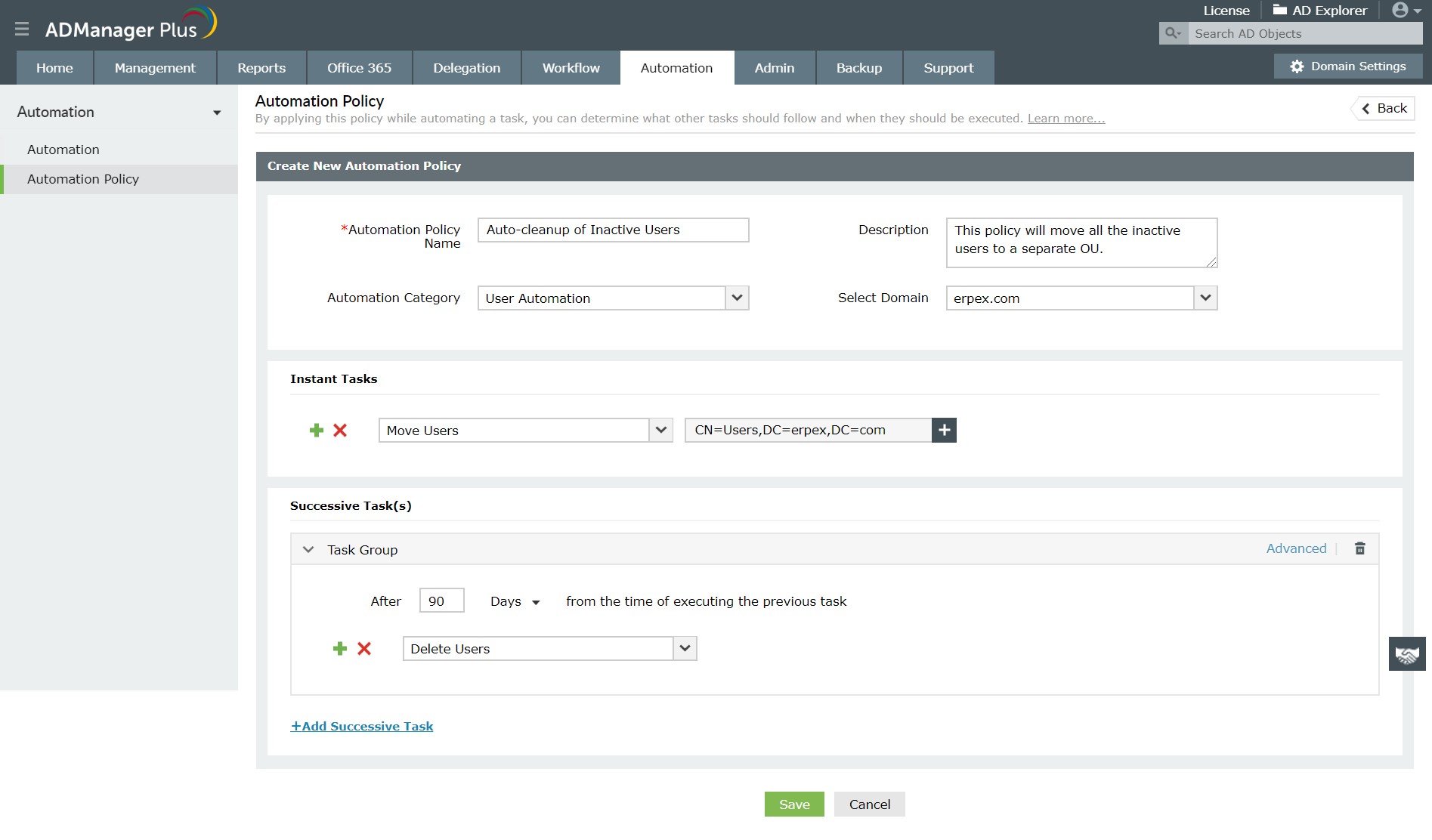 ADManager Plus dzięki funkcji automatyzacji procesu zarządzania „Tożsamości i dostępem” pozwala zaoszczędzić czas administratora, który przeznaczyłby na manualne wprowadzanie zmian.
