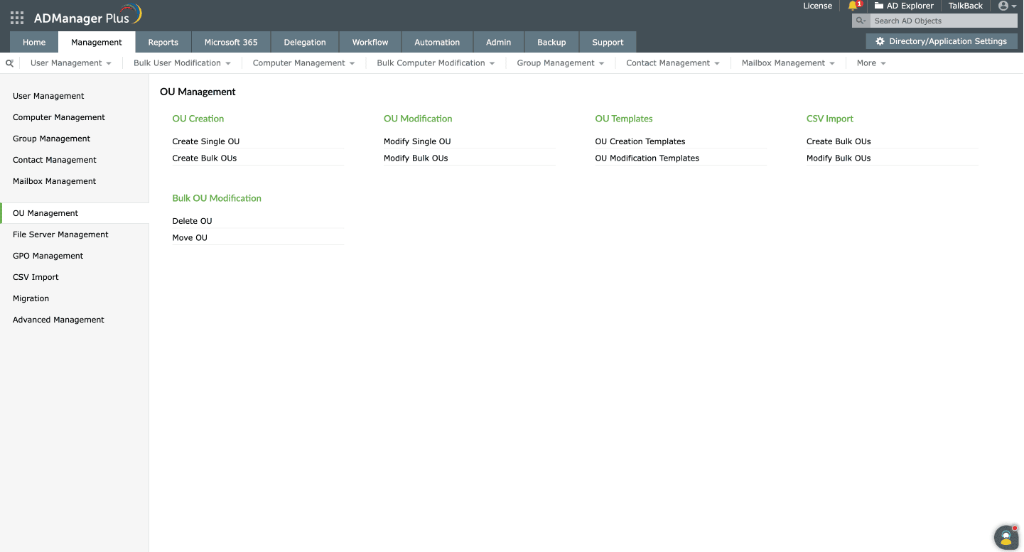 W celu zarządzania jednostką organizacyjną konieczne jest otworzenie natywnej konsoli AD, znalezienie jednostek organizacyjnych w domenie, a następnie przeprowadzenie pożądanych działań. W przypadku zarządzania wieloma jednostkami organizacyjnymi, działania należy powtórzyć dla każdej jednostki organizacyjnej. To nie jest takie proste zadanie, na jakie może wyglądać. Chociaż polecenia/skrypty PowerShell mogą być alternatywą, to z pewnością nie są najlepszym rozwiązaniem, ponieważ wymagają dogłębnej znajomości zasad kodowania.