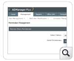 Funkcja zarządzania serwerem plików w ADManager Plus umożliwia administratorom zbiorowe zarządzanie (tzn. przypisywanie, modyfikowanie, odwoływanie) uprawnień NTFS oraz udziałów użytkowników. Wszystko, co trzeba zrobić, to wybrać zasób udostępniony, a następnie sprawdzić i zdefiniować kontrole dostępu użytkowników w oparciu o to, czy są potrzebne. Przy pomocy zarządzania serwerami plików w ADManager Plus administrator może: