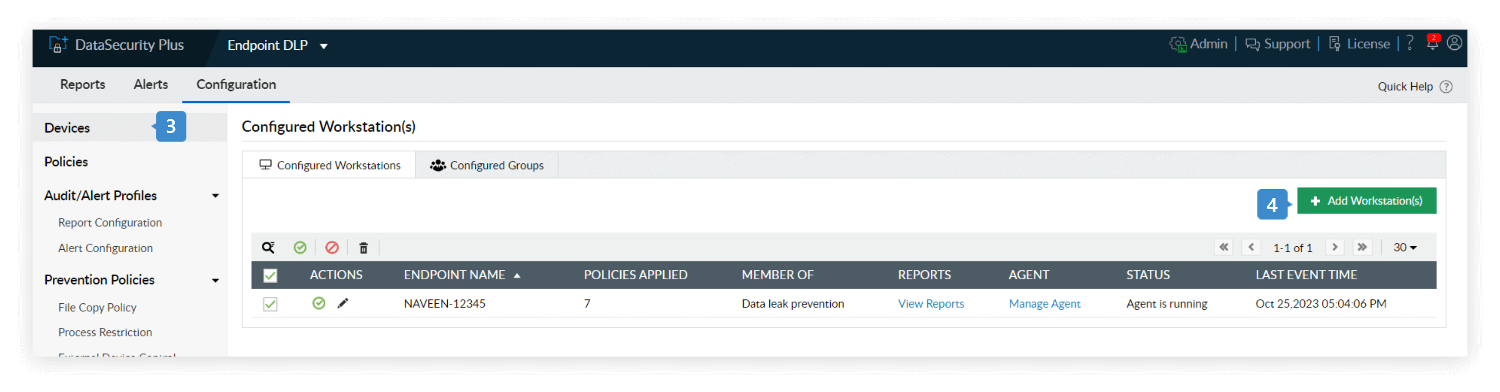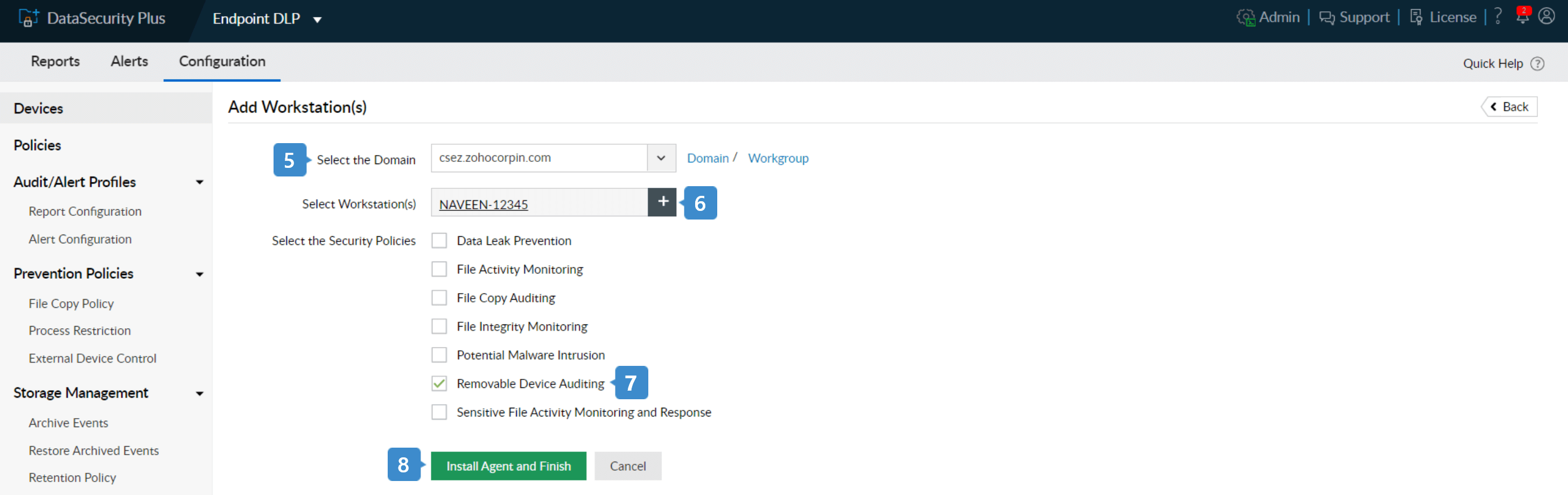- W konsoli DataSecurity Plus wybierz Endpoint DLP z listy rozwijanej aplikacji.