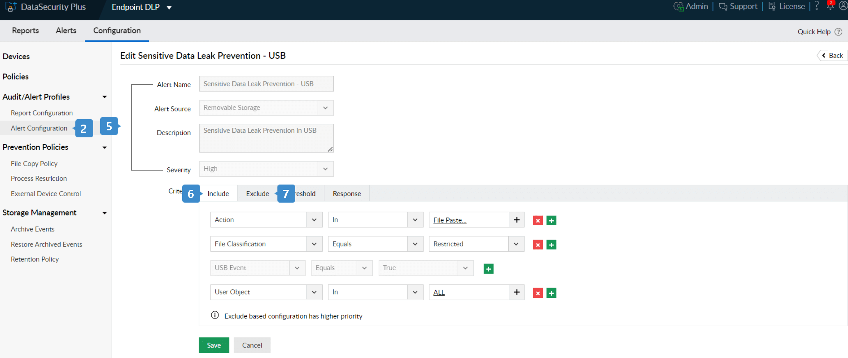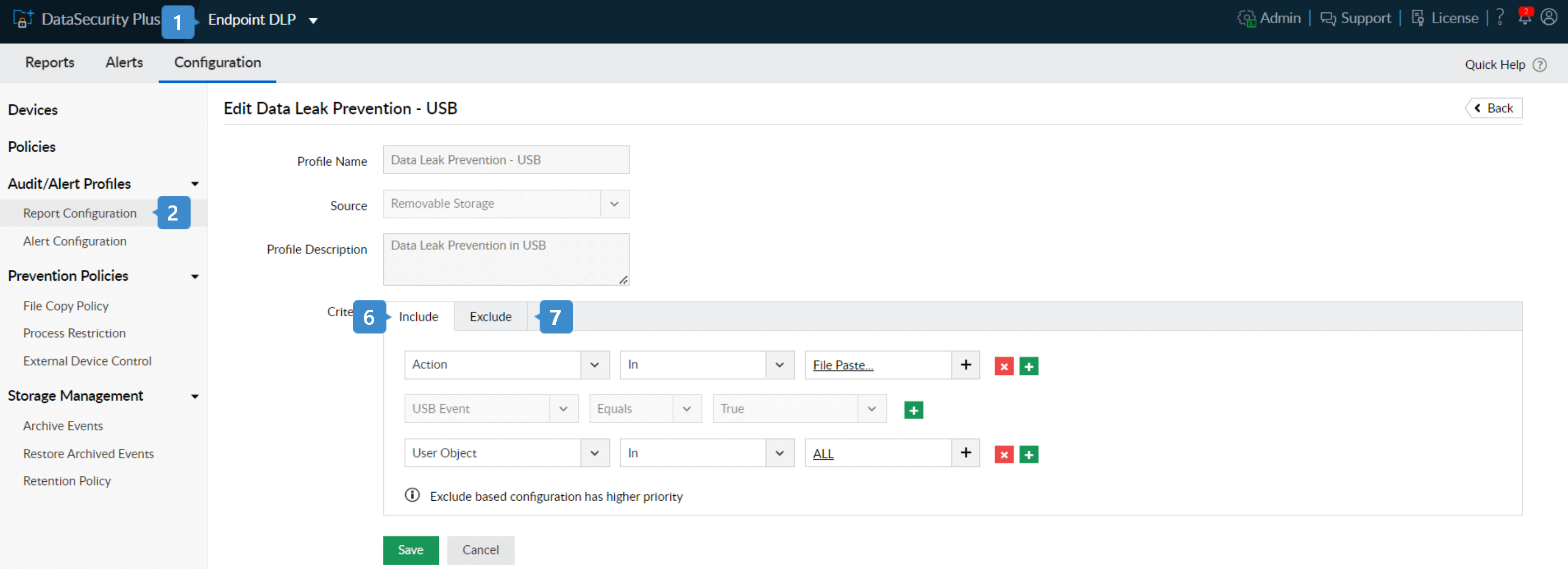 - Użyj opcji Wyklucz, aby wykluczyć zaufanych użytkowników, grupy lub nieistotne pliki z raportu o skopiowanych plikach.