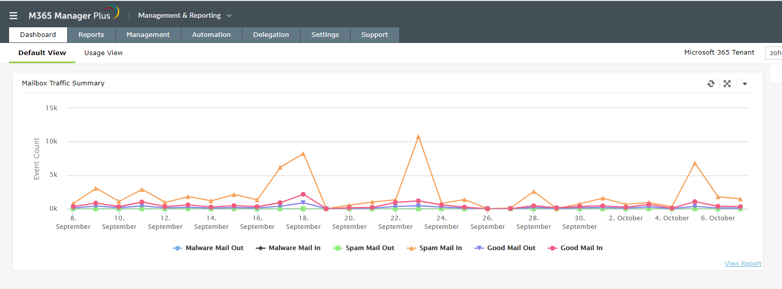Program M365 Manager Plus oferuje następujące raporty ułatwiające monitorowanie wiadomości e-mail pracowników: