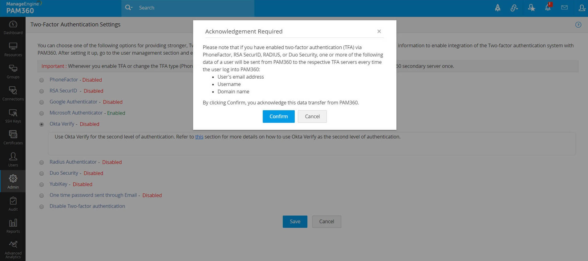 - How to Connect to PAM360 Web Interface when TFA via Okta Verify is Enabled?