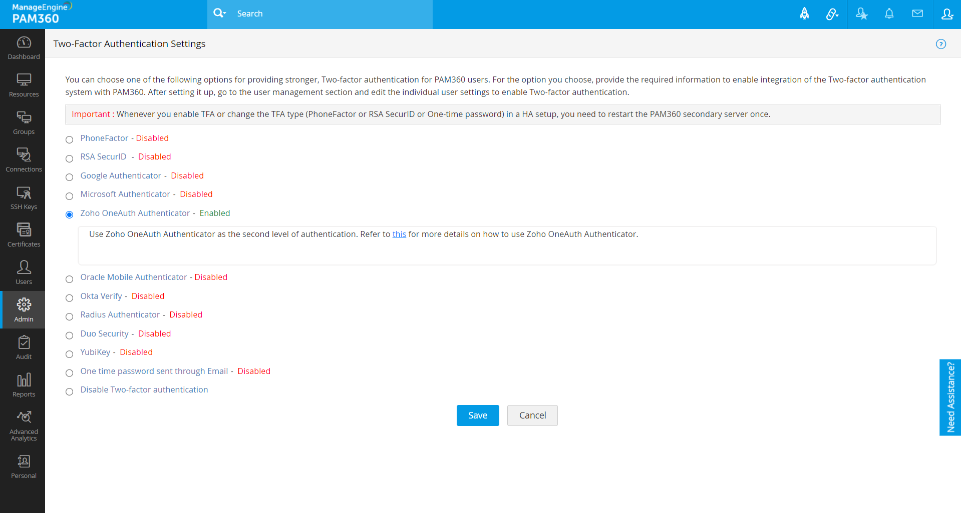 1. Configuring TFA in PAM360