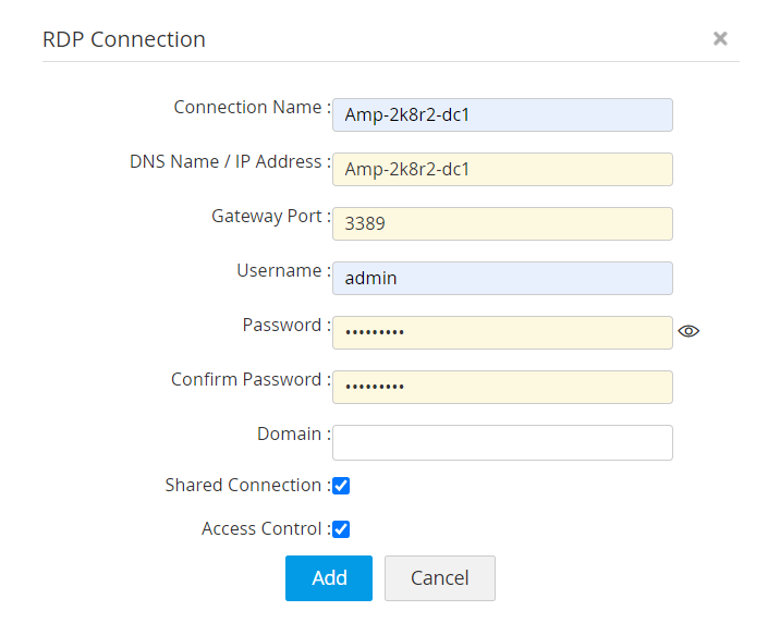 - Once all attributes are provided, click Add. The RDP-based remote system will be added as a Connection in Access Manager Plus.