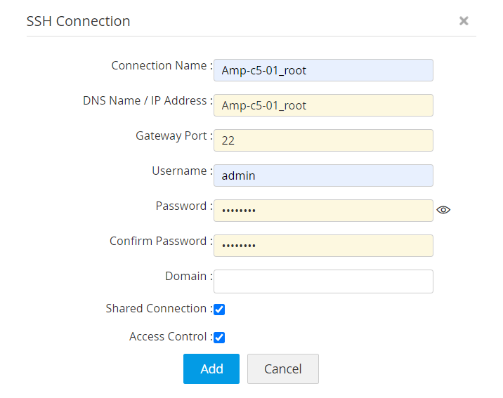 - Once all attributes are provided, click Add. The SSH-based remote system will be added as a Connection in Access Manager Plus.