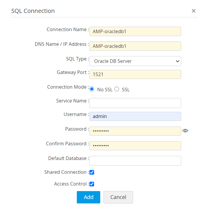 - By default, all connections are private at the time of adding. Select the Shared Connections checkbox to make the connection public and accessible to other users.