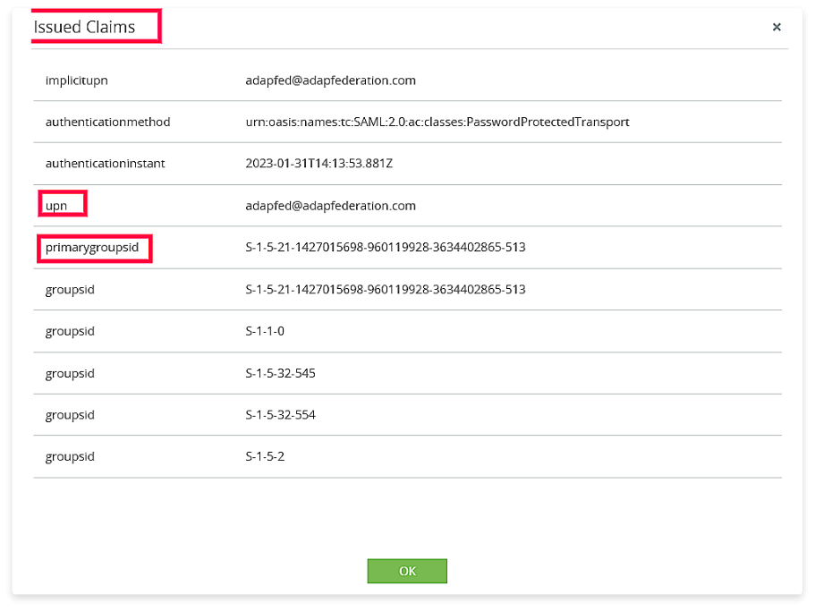 From this report, admins can also identify details regarding the issued claims (including user principal name, email address, and more) which were used to authenticate the user as shown in Figure 4. Since, AD FS leverages claims to prove the identity of the user, it’s important for admins to understand the granular details associated with them. Viewing the claim details can be instrumental to admins in multiple ways, such as: