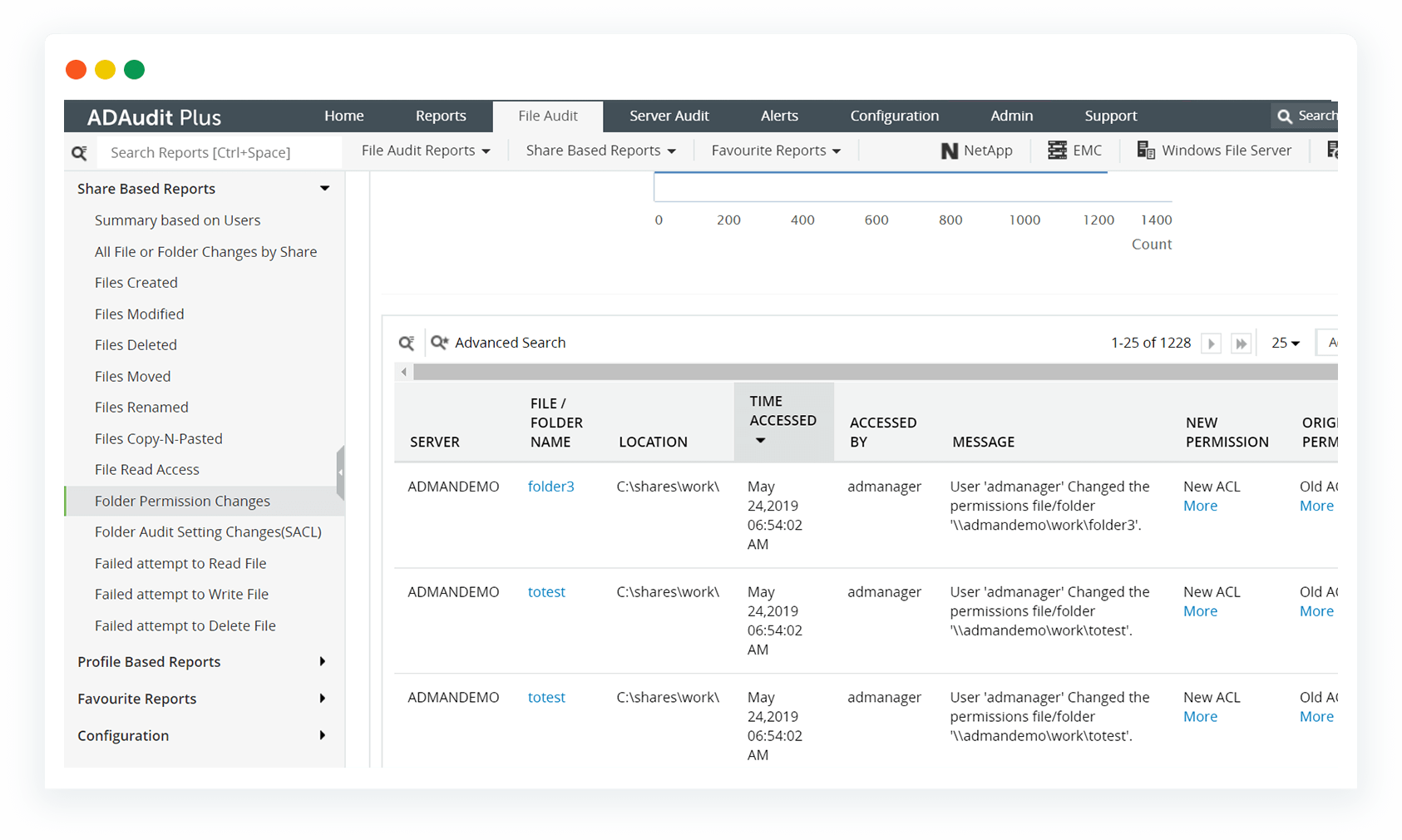 A dangerous file containing malware was created in one of your shared folders because someone had change access to this network share. Do you have succinct audit trails to help you uncover who made this change?