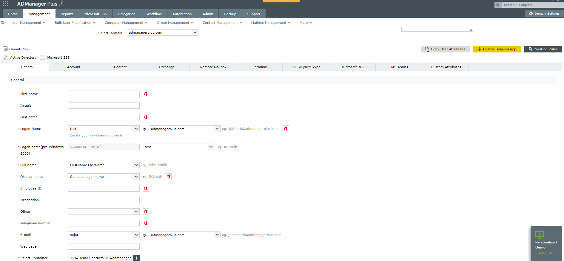 The User Creation Method for Microsoft 365 account creation is removed from the template, due to which the technician sees this error message.