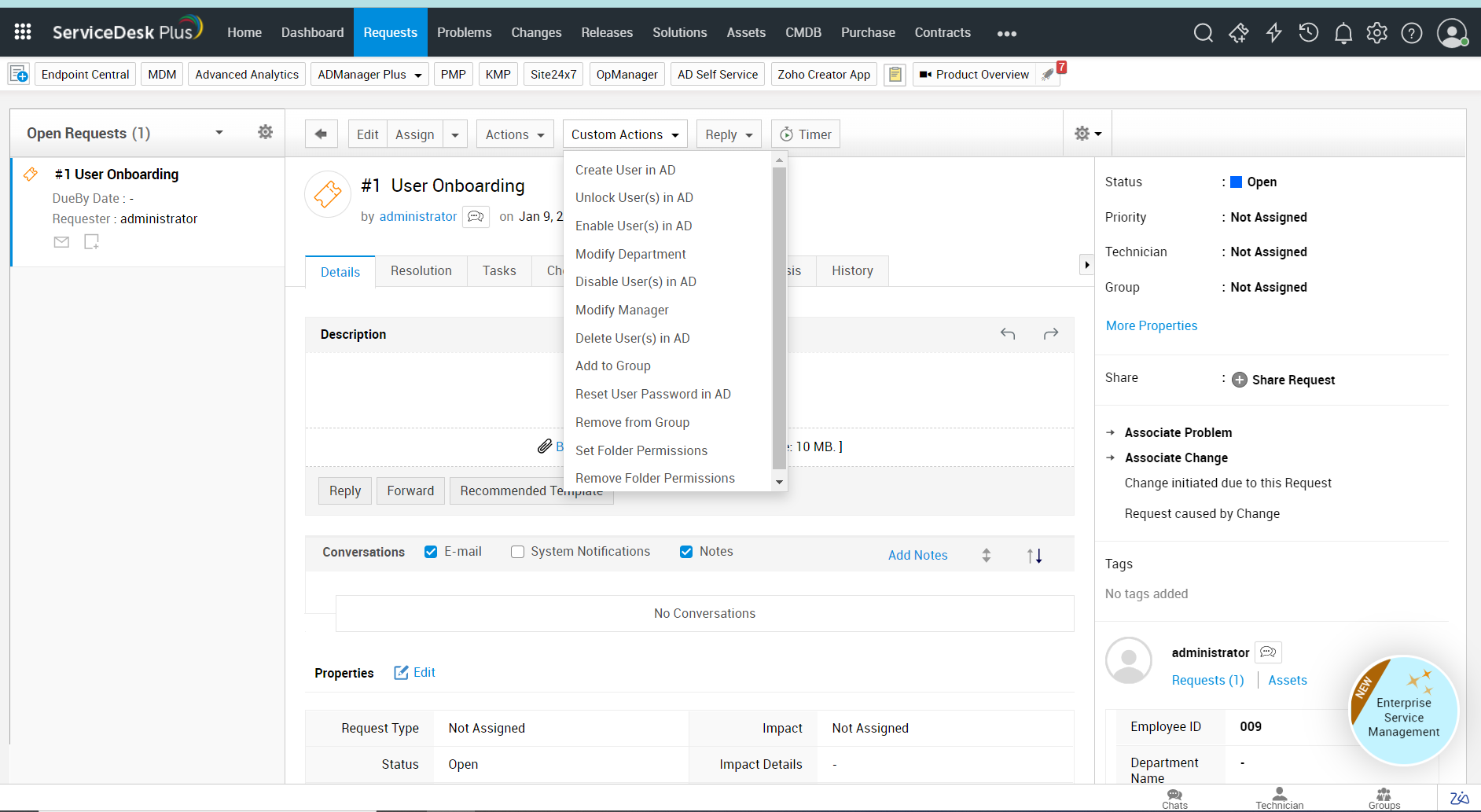 For ServiceDesk Plus to be integrated with ADManager Plus, update ServiceDesk Plus to the latest version.