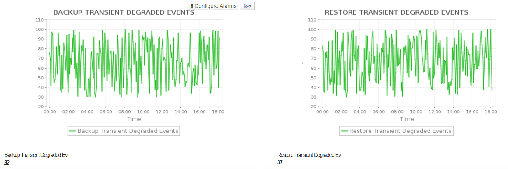 Obtain a holistic view of the reliability and effectiveness of your backup operations by monitoring the number of healthy and unhealthy events that have occurred. Gain detailed insights into the health and performance of restore backup jobs by analyzing metrics related to both Persistent (ongoing) and Transient (temporary) health events.