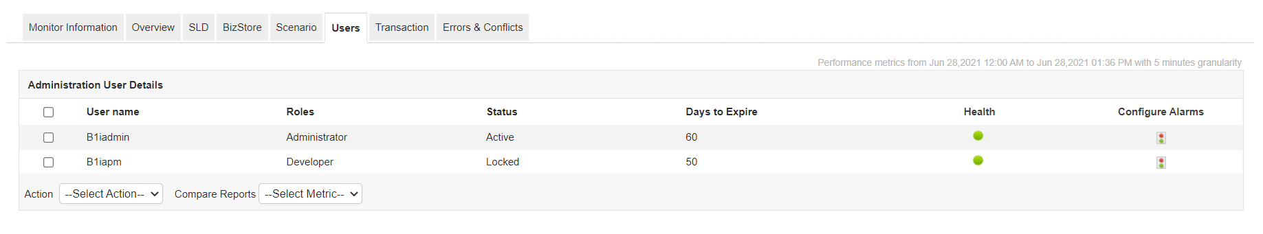 With Applications Manager's SAP Business One monitoring tool, be informed about the users in the system. Become aware of their roles and status. Configure alarms for the Days to Expire metric and get alerts on the go whenever a user role is about to expire and prevent users from being disabled/ locked out.