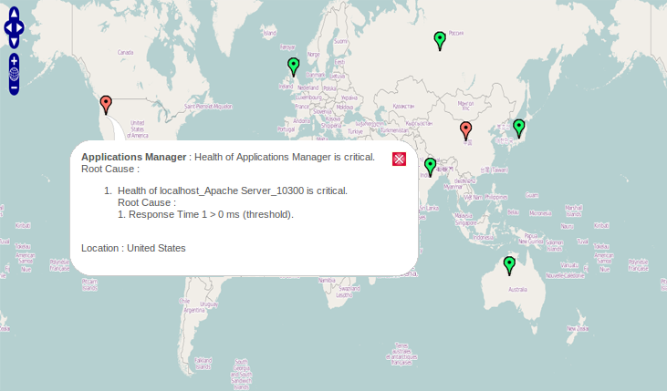 World Map Business View in Applications Manager visually represents the status of all your monitor groups across the globe and thus provides a geographical view of your business services.