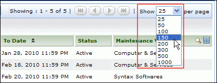Set the number of Contracts per page and navigation buttons: You can set the number of contracts to be displayed in the contract list view page.