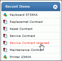 Recent Items: All the recent items viewed by you is displayed under this block. You can navigate back to those pages on clicking on the item link.