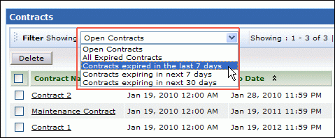 Lists all the contracts which expired in the last 30 days.Contracts expiring in next 7 days