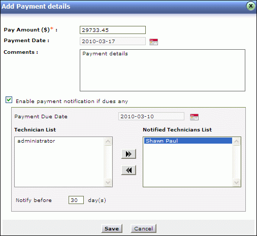 4. You can also enable notification if there are any dues in the payment by enabling the check box.