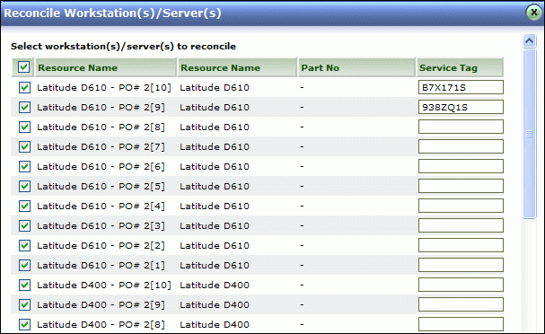 Enable the check box beside the resource name and enter the Service Tag of the scanned workstation.