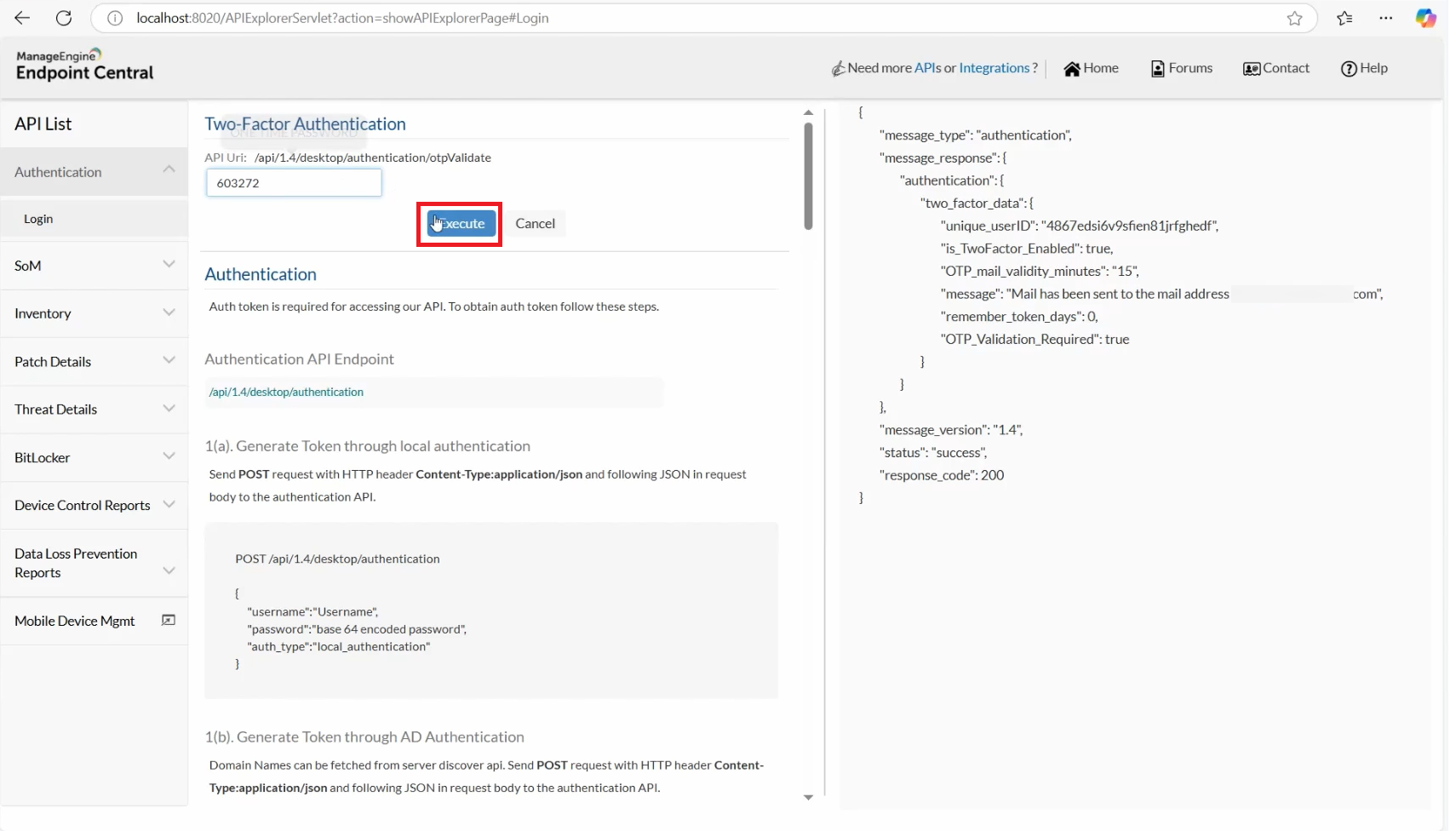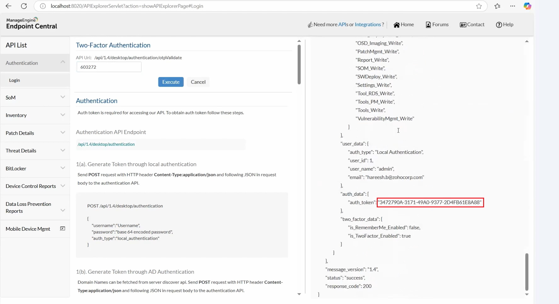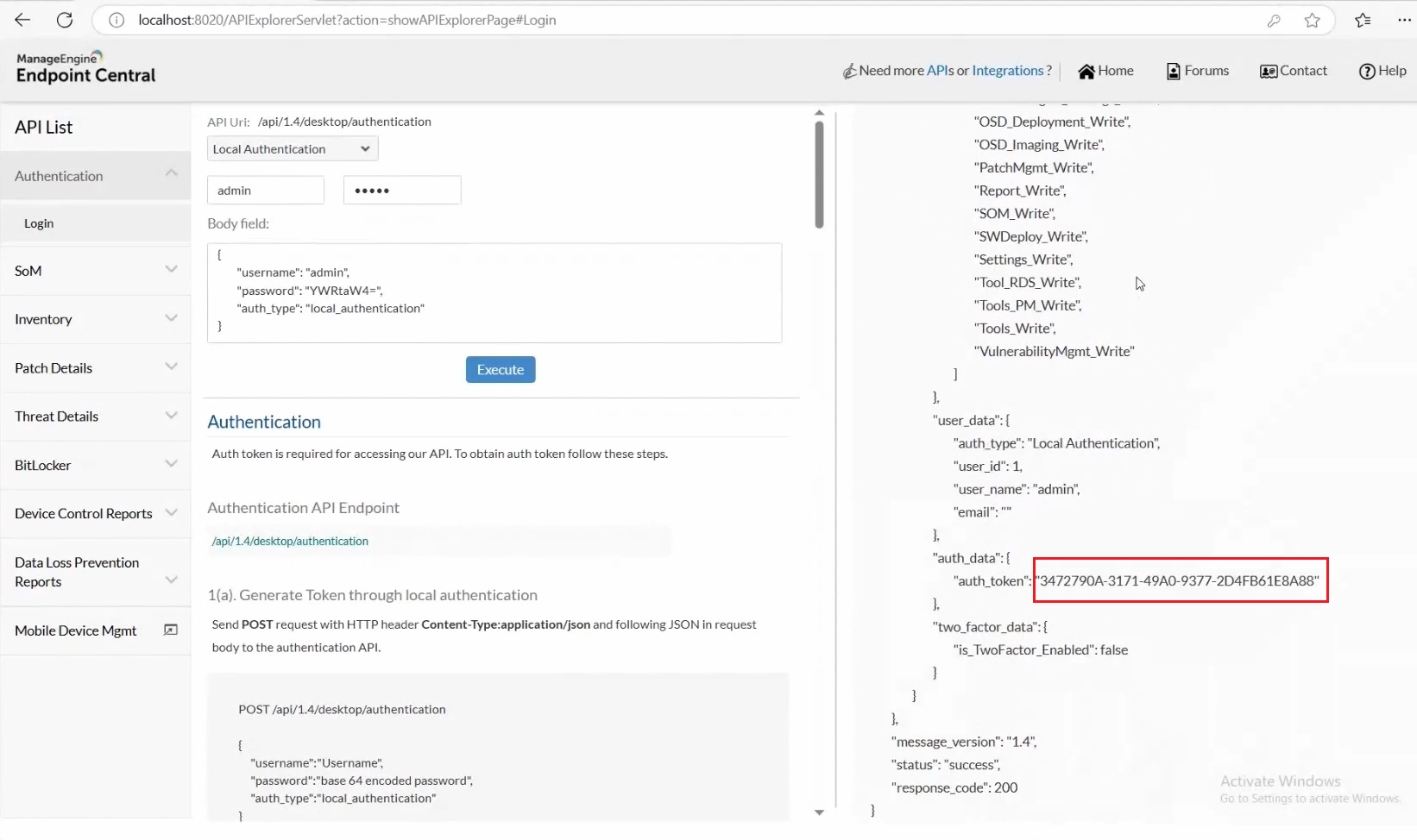 ManageEngine Endpoint Central now facilitates easy integration with your existing infrastructure using REST APIs. You can perform various desktop management activities easily from a single console. You can find the list of modules for which APIs are available in the side bar, if you need more APIs you can contact us with your requirement.