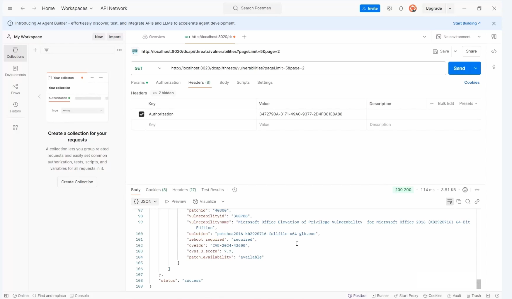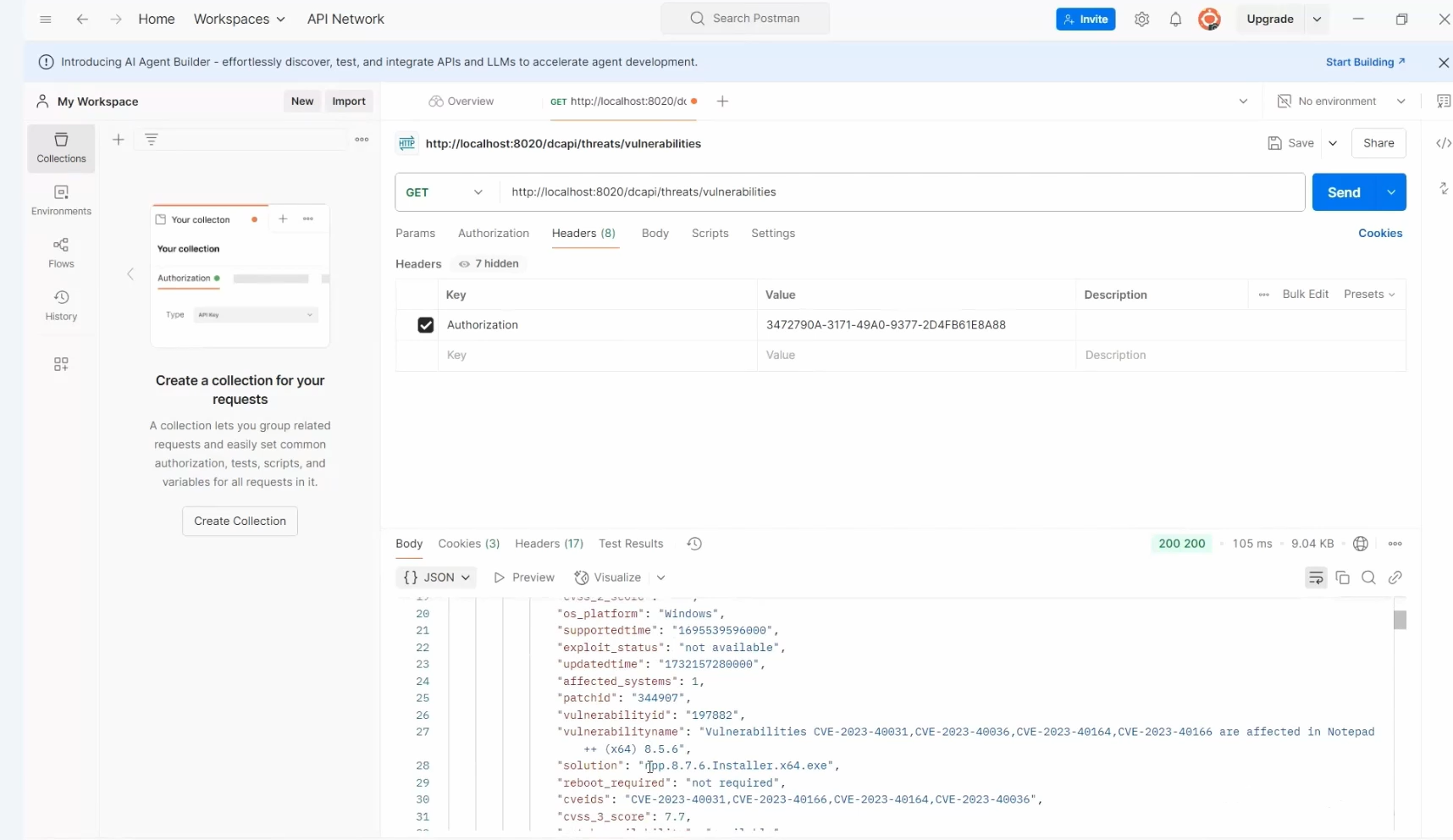 Let us take an example scenario of calling the API for retreiving the comprehensive list of all vulnerabilities.