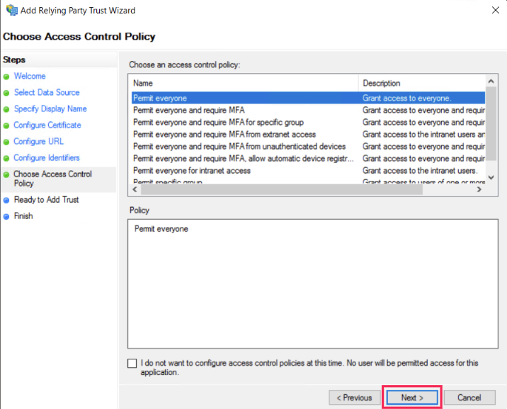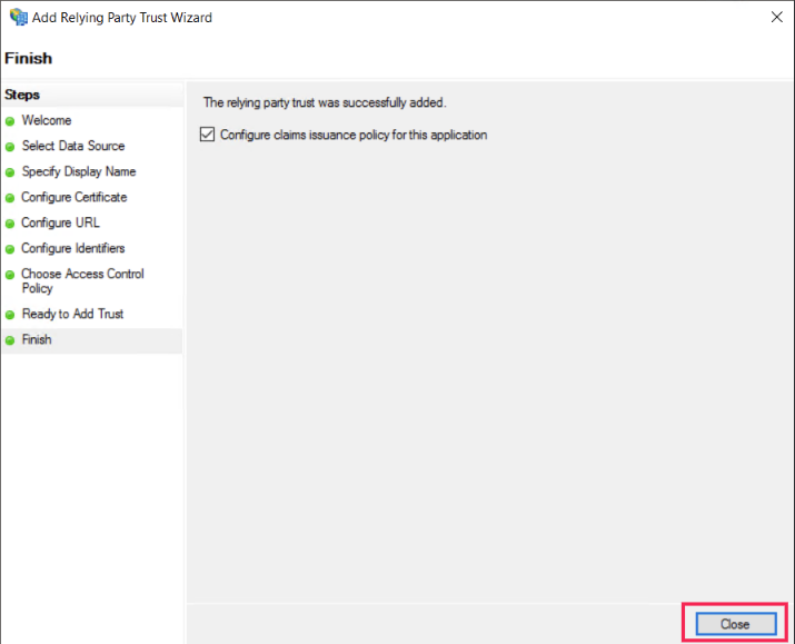 In AD FS management, paste the Entity IDin the Relying party trust identifier. Click on Add.