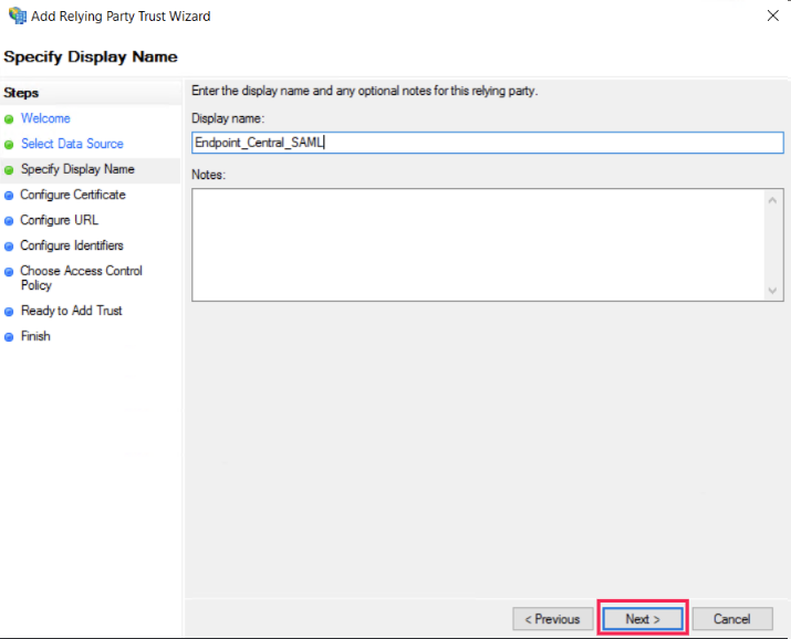 This document will walk you through the steps required to configure SAML Authentication settings in Central Serverfor AD FS.