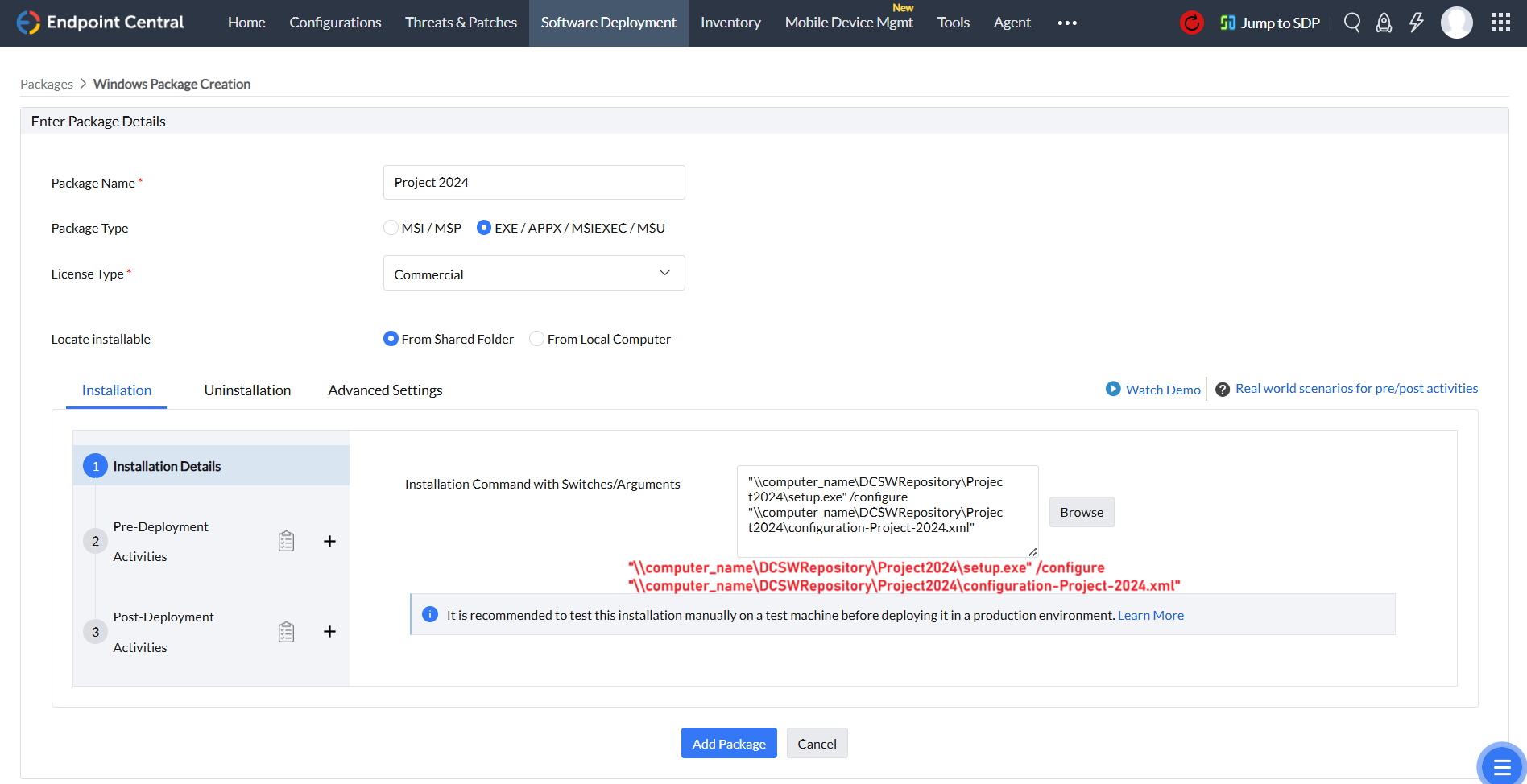 This document provides you the steps required to deploy Microsoft Project 2024 to multiple computers using Endpoint Central.