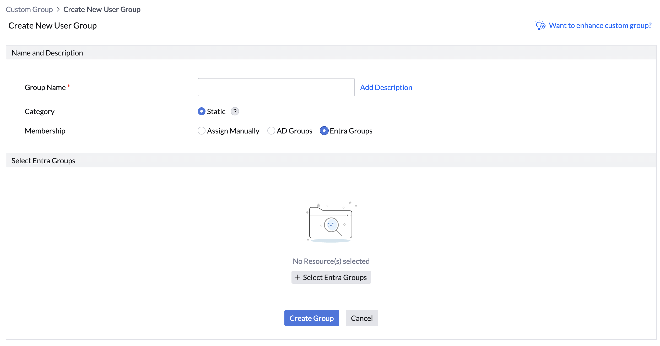 Directory-based groups allow you to create user custom groups based on existing Active Directory (AD) groups or Entra (Azure AD) groups that are synchronised with Endpoint Central. This saves time and ensures consistency with your directory structure.