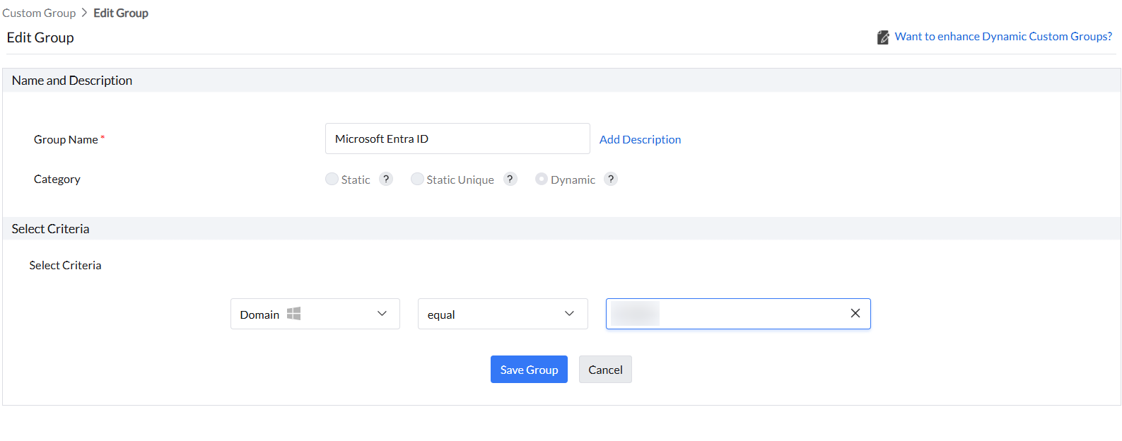 For tasks deployed with Custom Group as the primary target, use a Dynamic Custom Group based on Domain as the criteria, which includes Entra ID-joined computers previously managed as Workgroup type. Update the group criteria to include the Entra ID domain now.