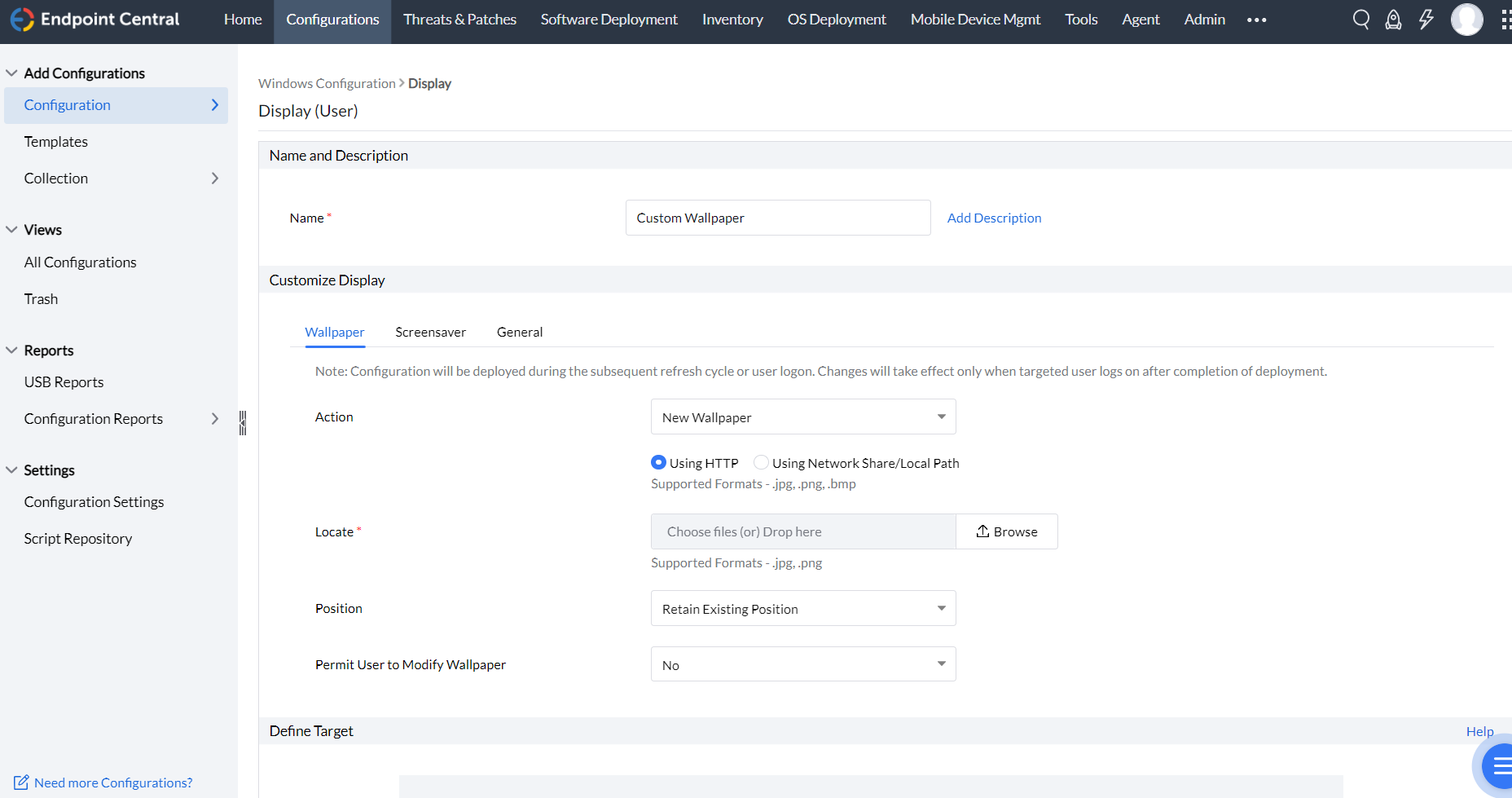 - In the Customize Display criteria, enter the following details under Wallpaper
