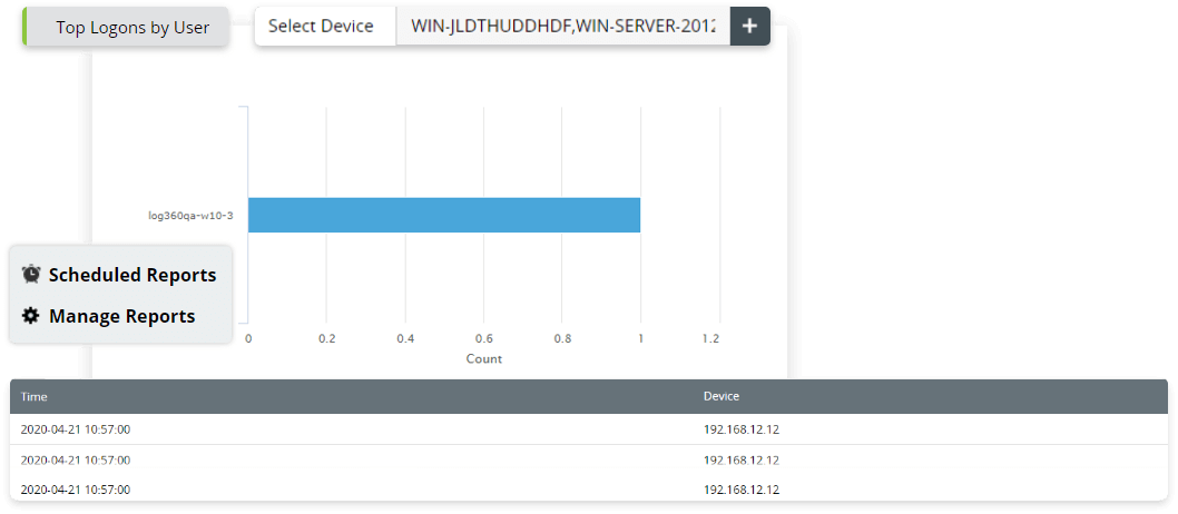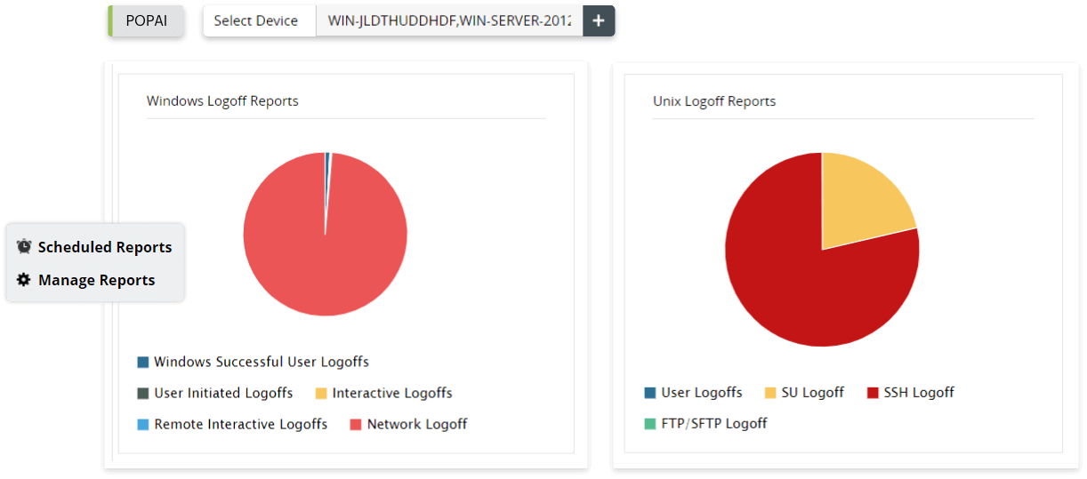 - Network device logon reports