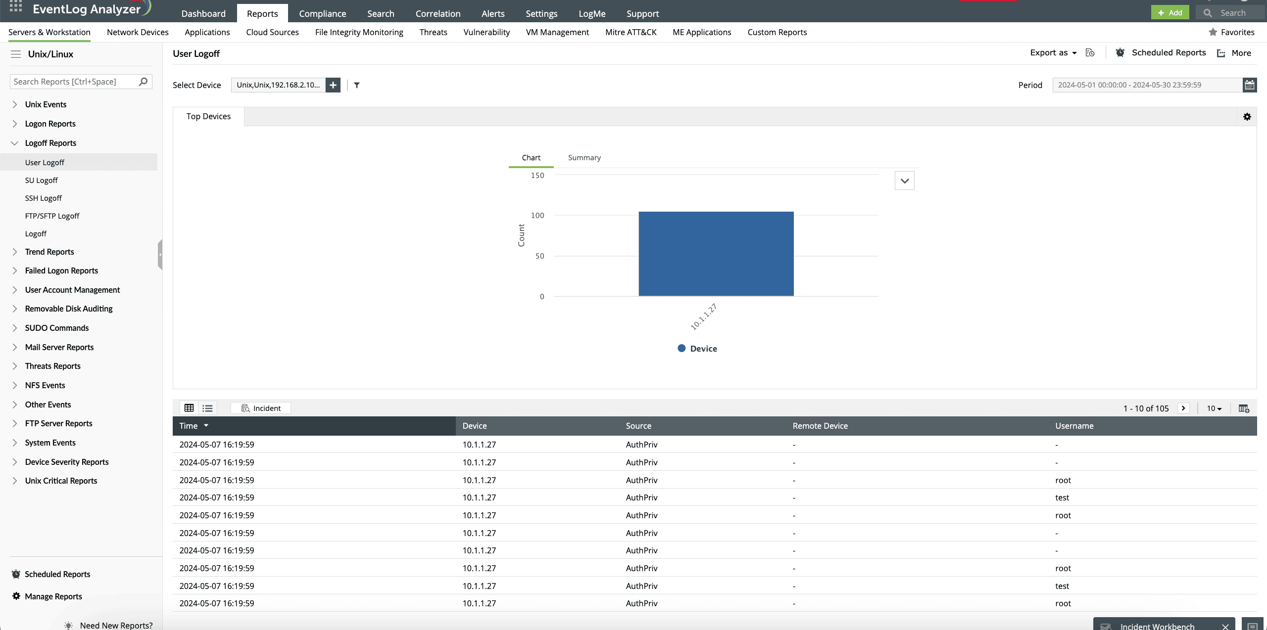 The Linux operating system generates logs that are crucial for ensuring smooth security and network operations. Collect, analyze, search, correlate, and generate reports on Ubuntu systems with a simple yet efficient Ubuntu log management tool: EventLog Analyzer.
