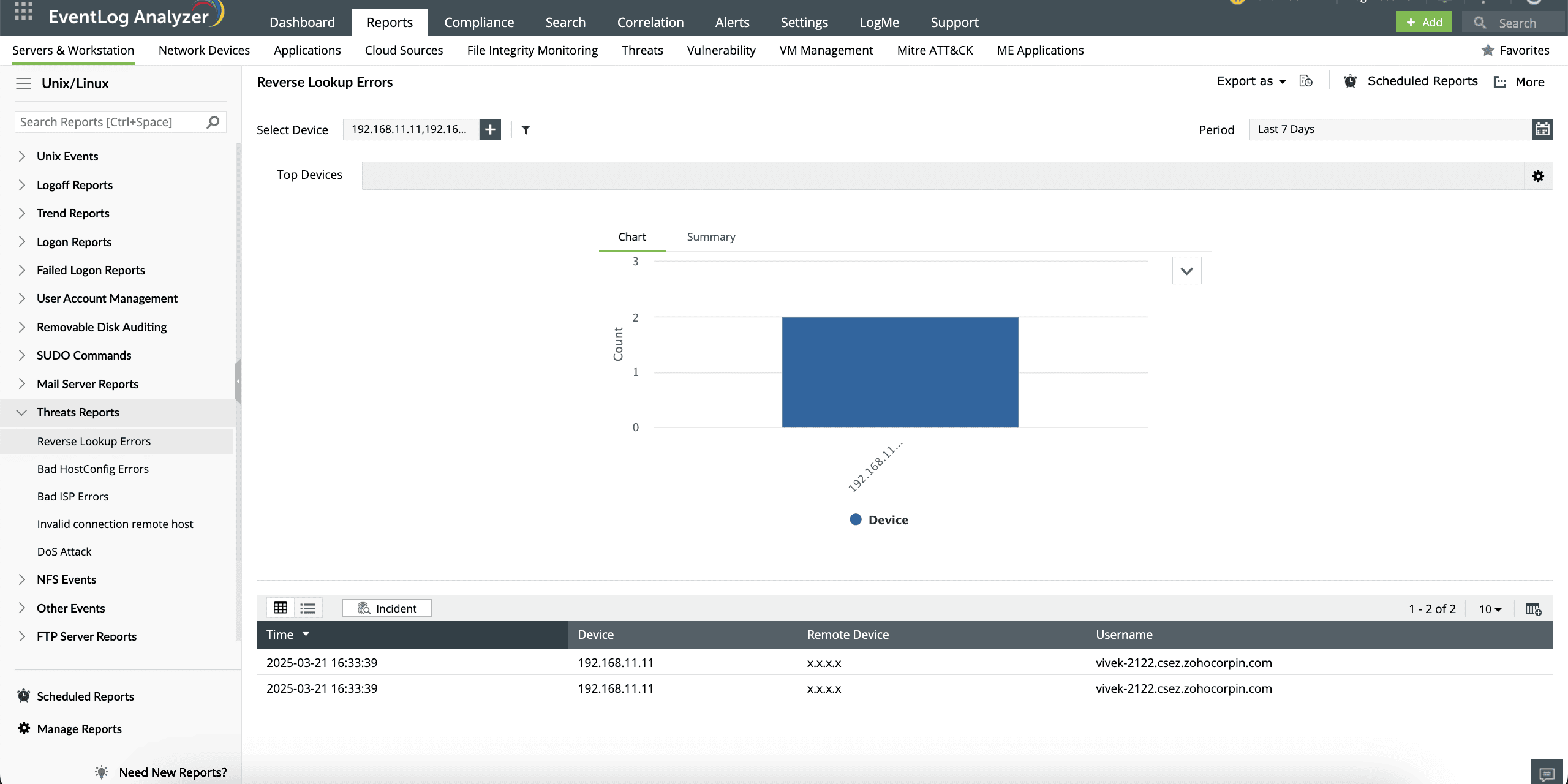 Get more insights into the malicious sources targeting your Ubuntu systems with EventLog Analyzer's built-in global threat intelligence database and its Advanced Threat Analytics add-on.
