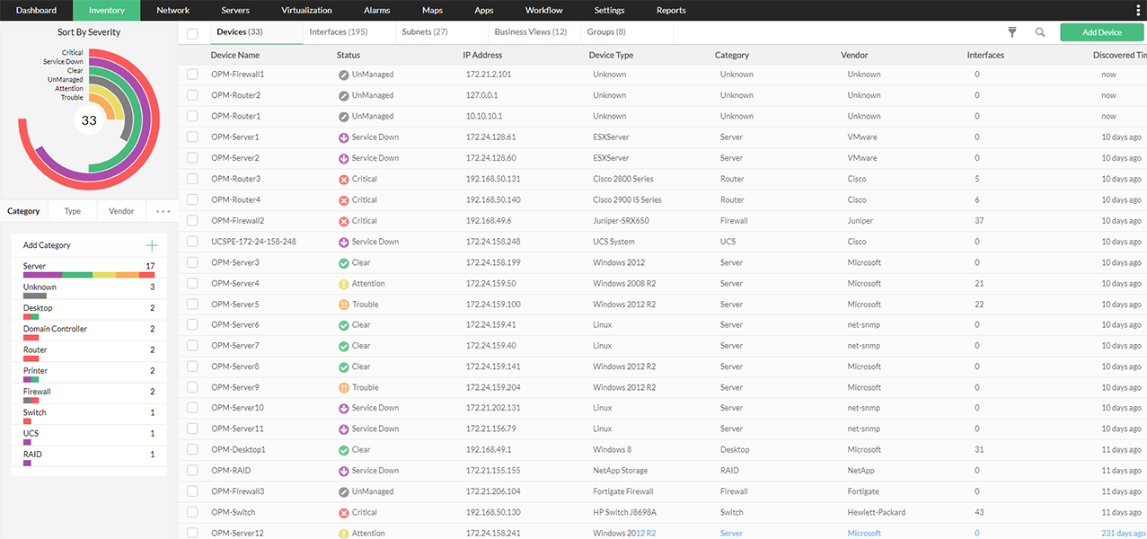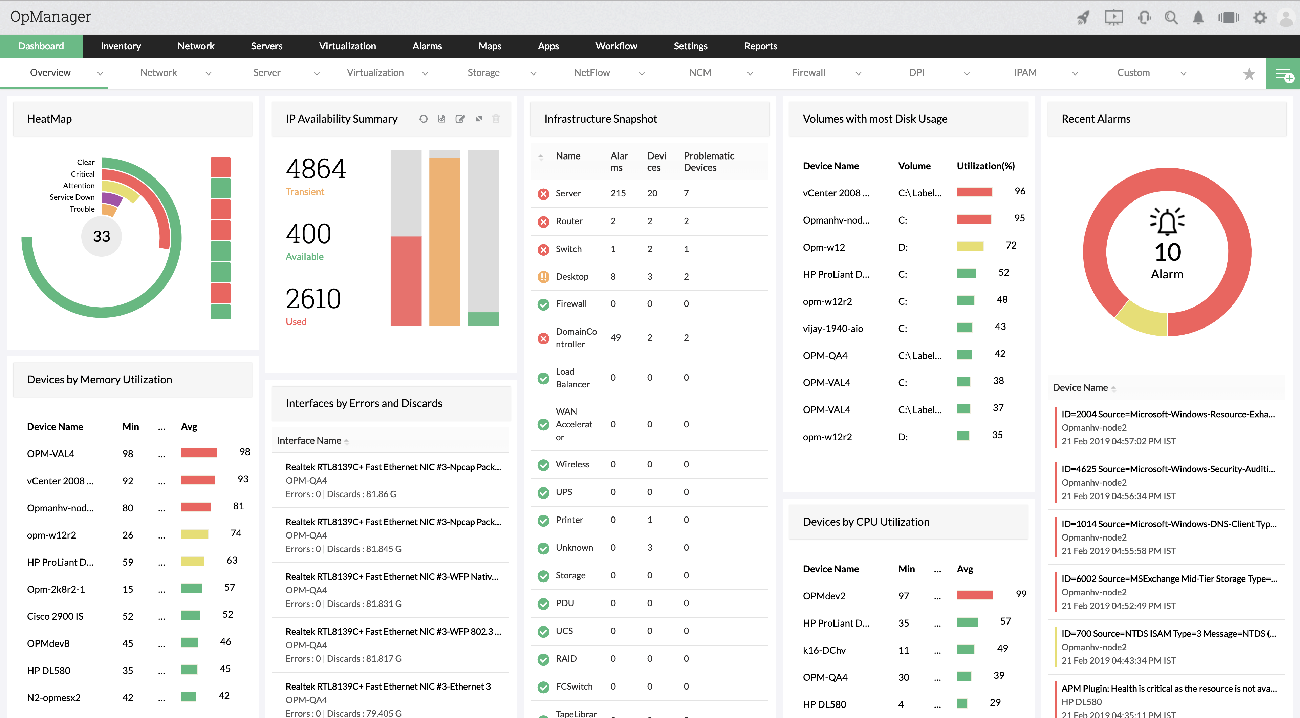 OpManager provides intuitive dashboards and detailed reports to help you analyze the performance of your network in very less time. It also allows you to create custom reports matching your requirements, which can prove very effective during auditing processes.