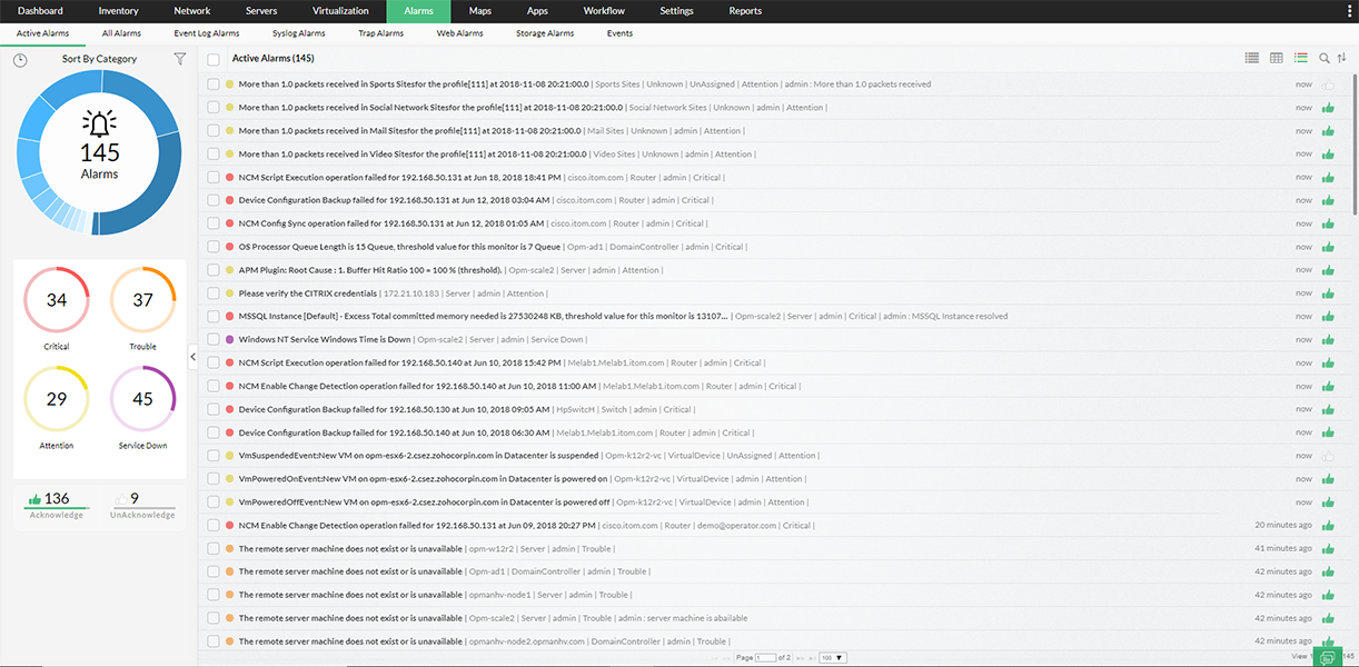 OpManager monitors VMs of VMware, Hyper-V, Xen and Nutanix server virtualization platforms. It has over 2000 built-in network performance monitors which can provide accurate information on your network performance, at any instance.