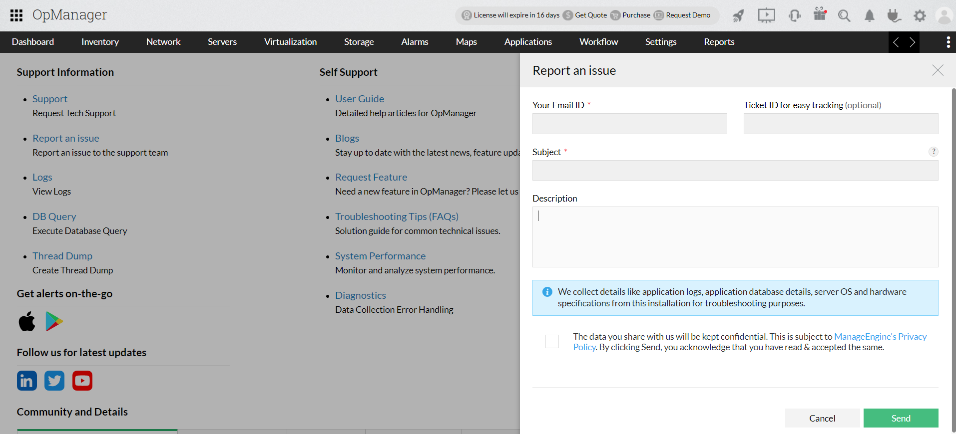 Before compressing the logs folder, stop NetFlow Analyzer completely. Manually sending the log files involves two stages,