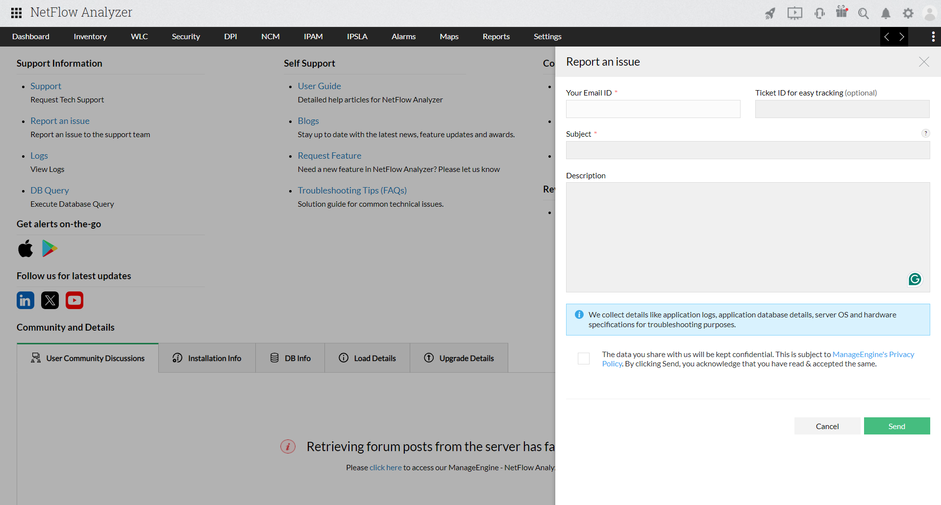 - Sending it to the NetFlow Analyzer support