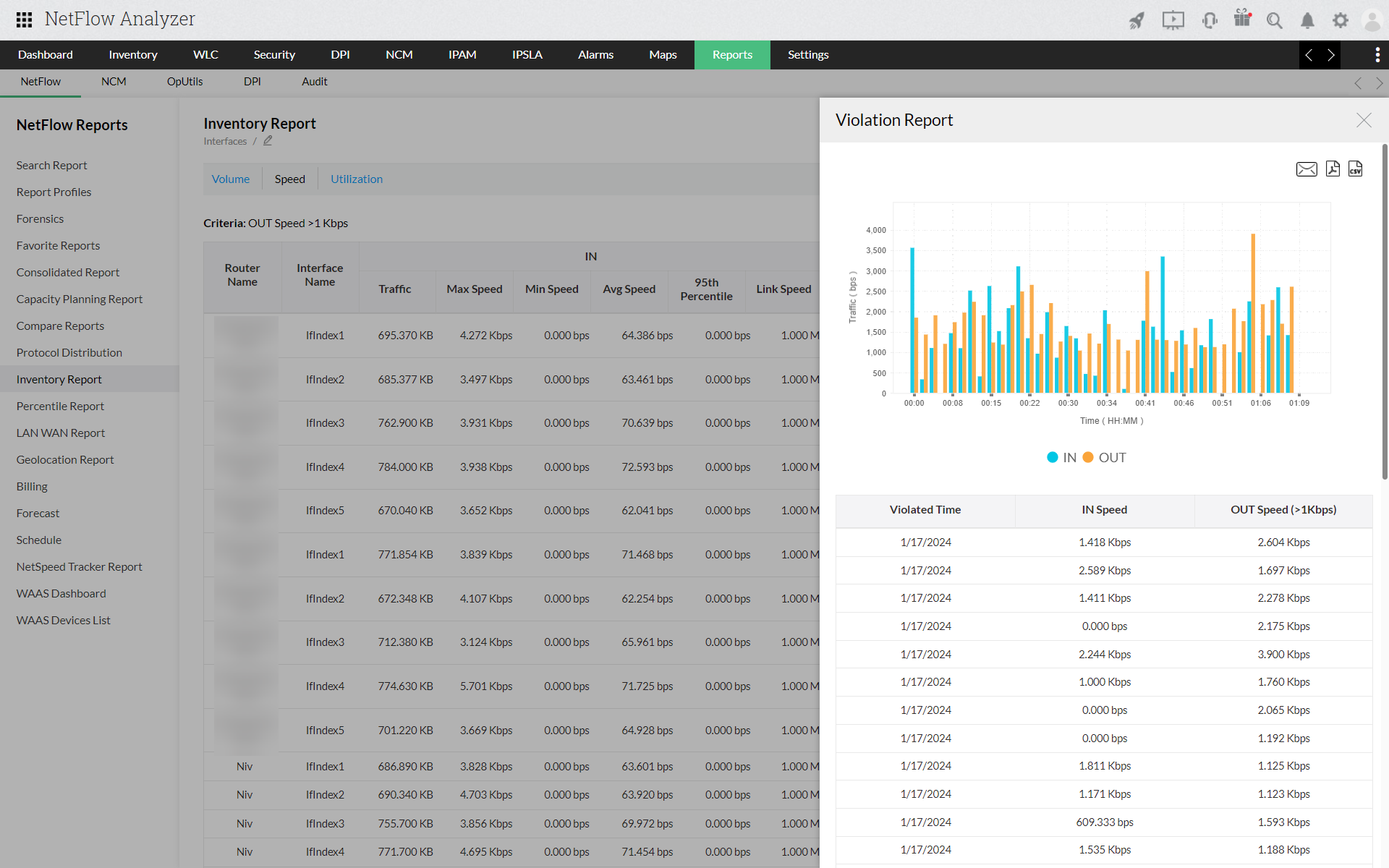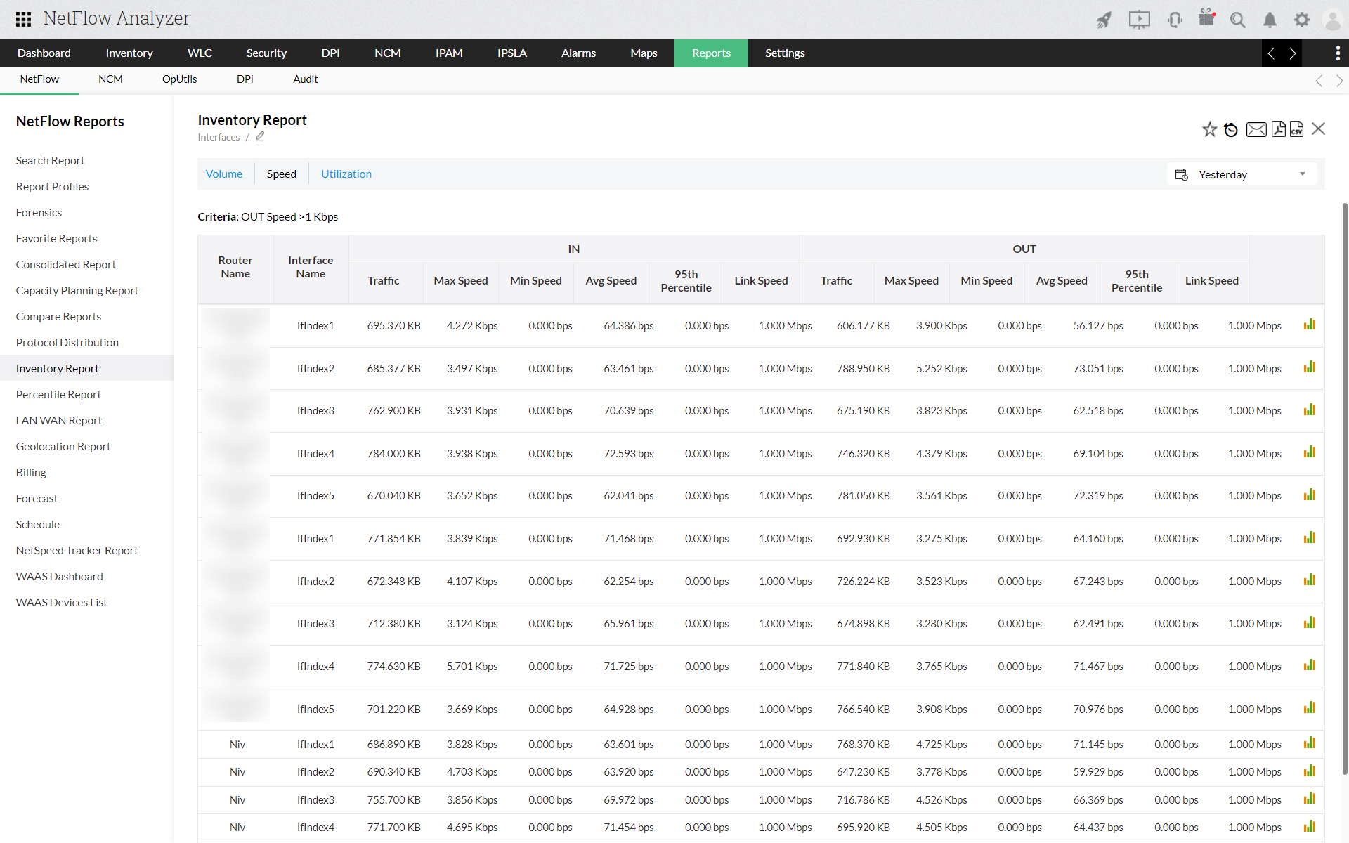 Inventory report enables you to choose amongst the traffic source - Interface/IP Group/Interface Group/Access Point/AS View/Access Point Group/SSID Group.