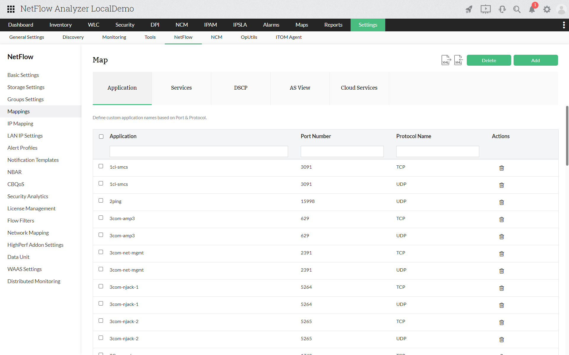 You can only view the created Mapping in the NetFlow Analyzer Probe UI. All addition and modification of Application, DSCP, Services, AS view and Cloud Services mapping can be done only from the Central UI.