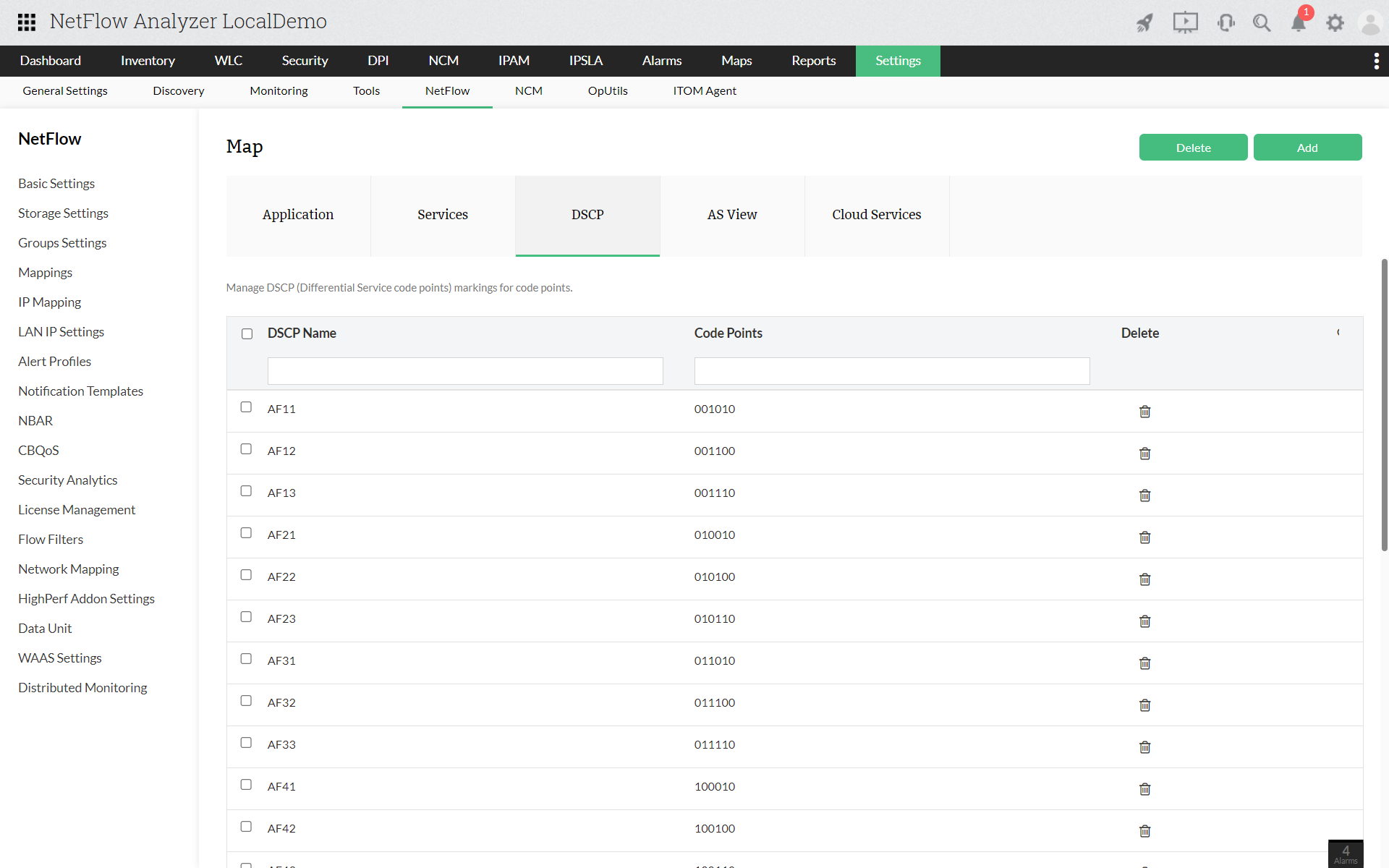 | DSCP Mapping | Add a DSCP code point in NetFlow Analyzer to view defined QoS traffic |