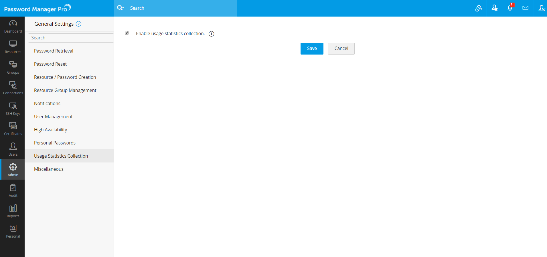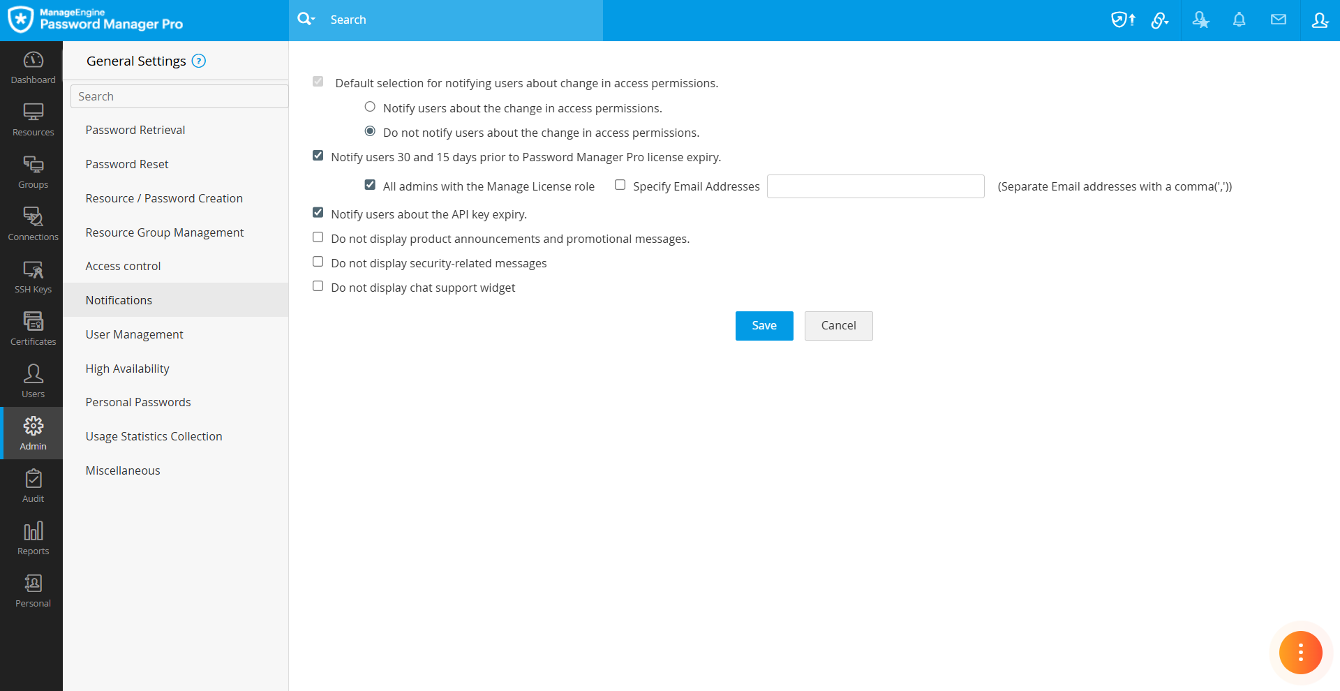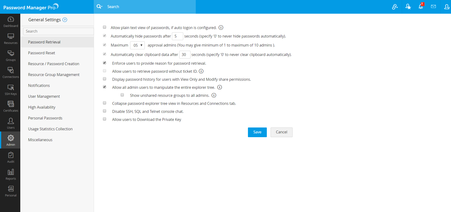 Note: In MSP editions of Password Manager Pro, only the MSP administrator can enable or disable this option.