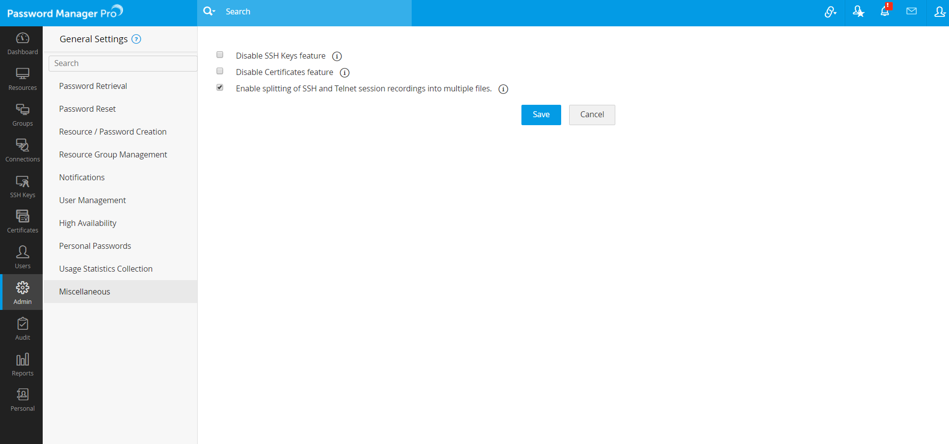 Click Miscellaneous from the left pane; this section consists of optional customizations you can apply to Password Manager Pro based on your requirement.