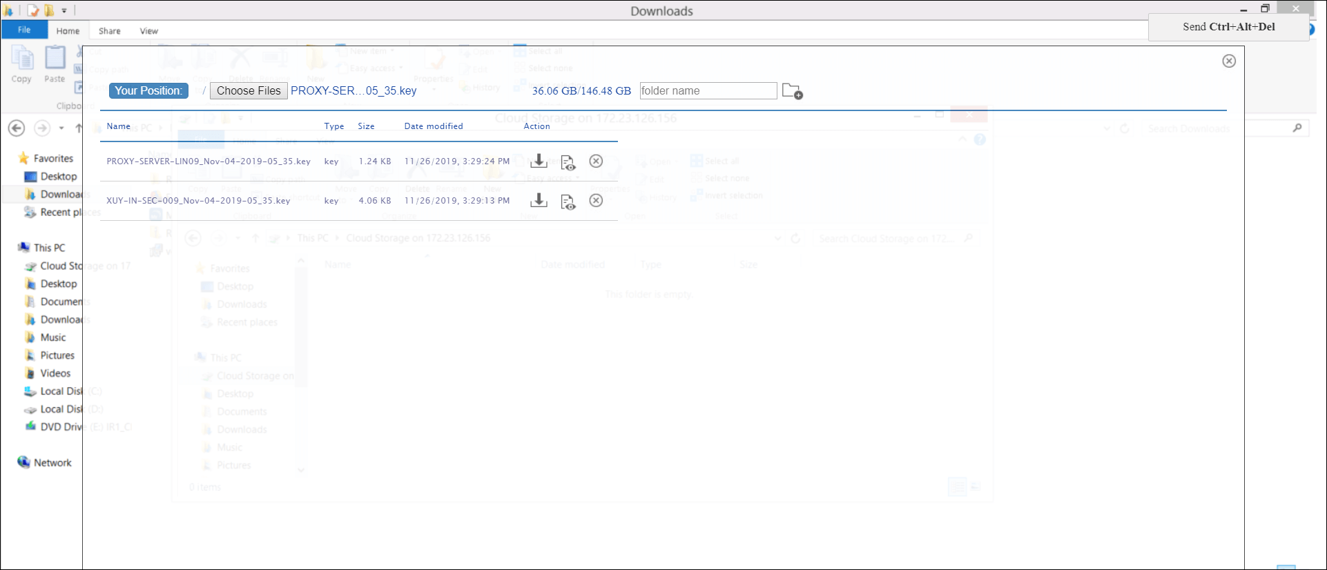 - Copy and paste the required file from the remote machine in the cloud storage disk. Now, the file will appear in the file transfer window as shown below.