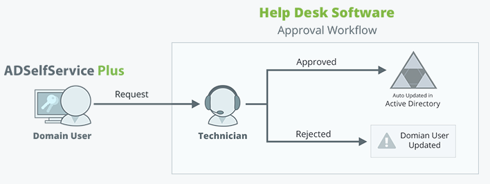A help desk software with approval workflow feature such as ADManager Plus is required for the review and approval process.