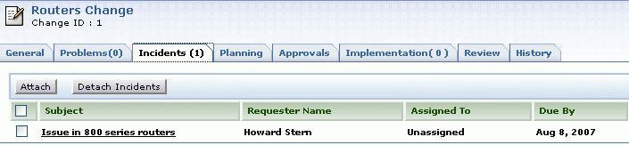 You can associate Incidents with a change. Multiple similar Incidents can be associated to a single change. This allows completion of multiple requests simultaneously.