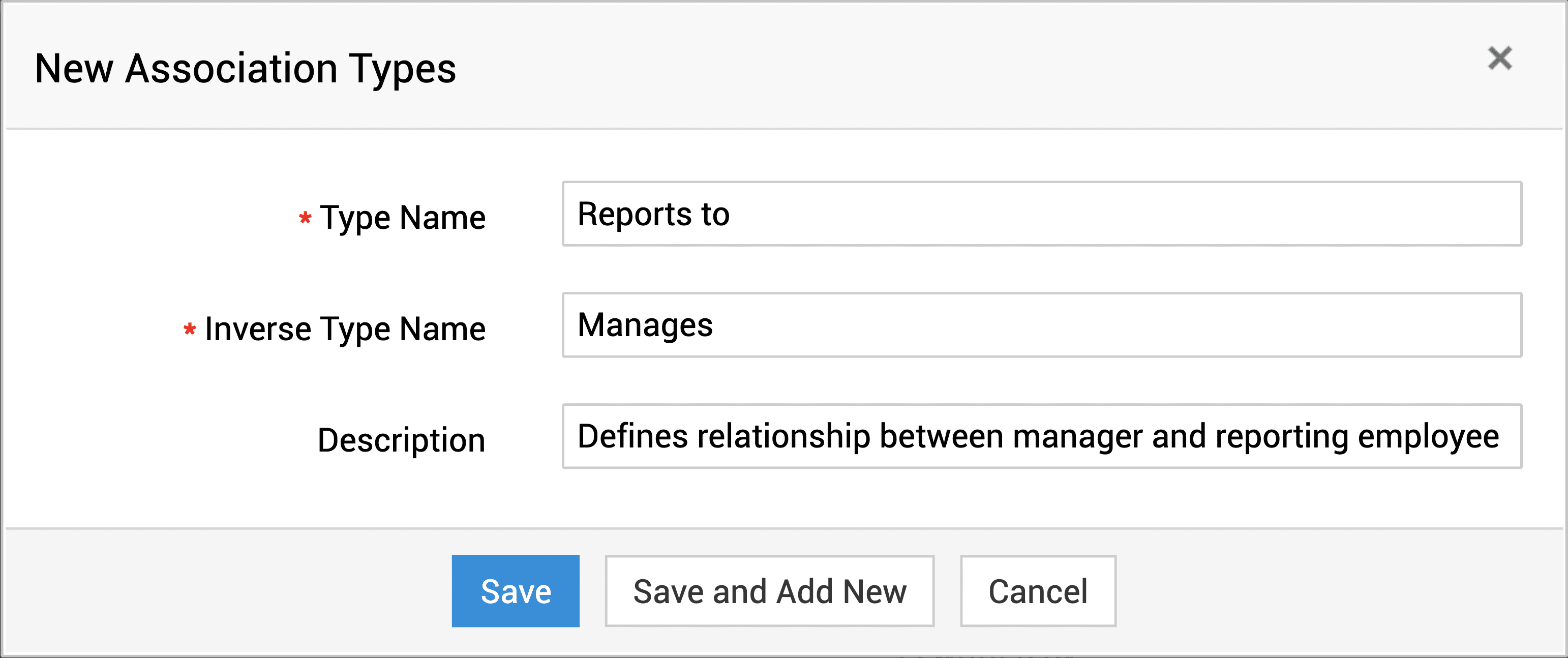 - Enter the association type name and the inverse type name.