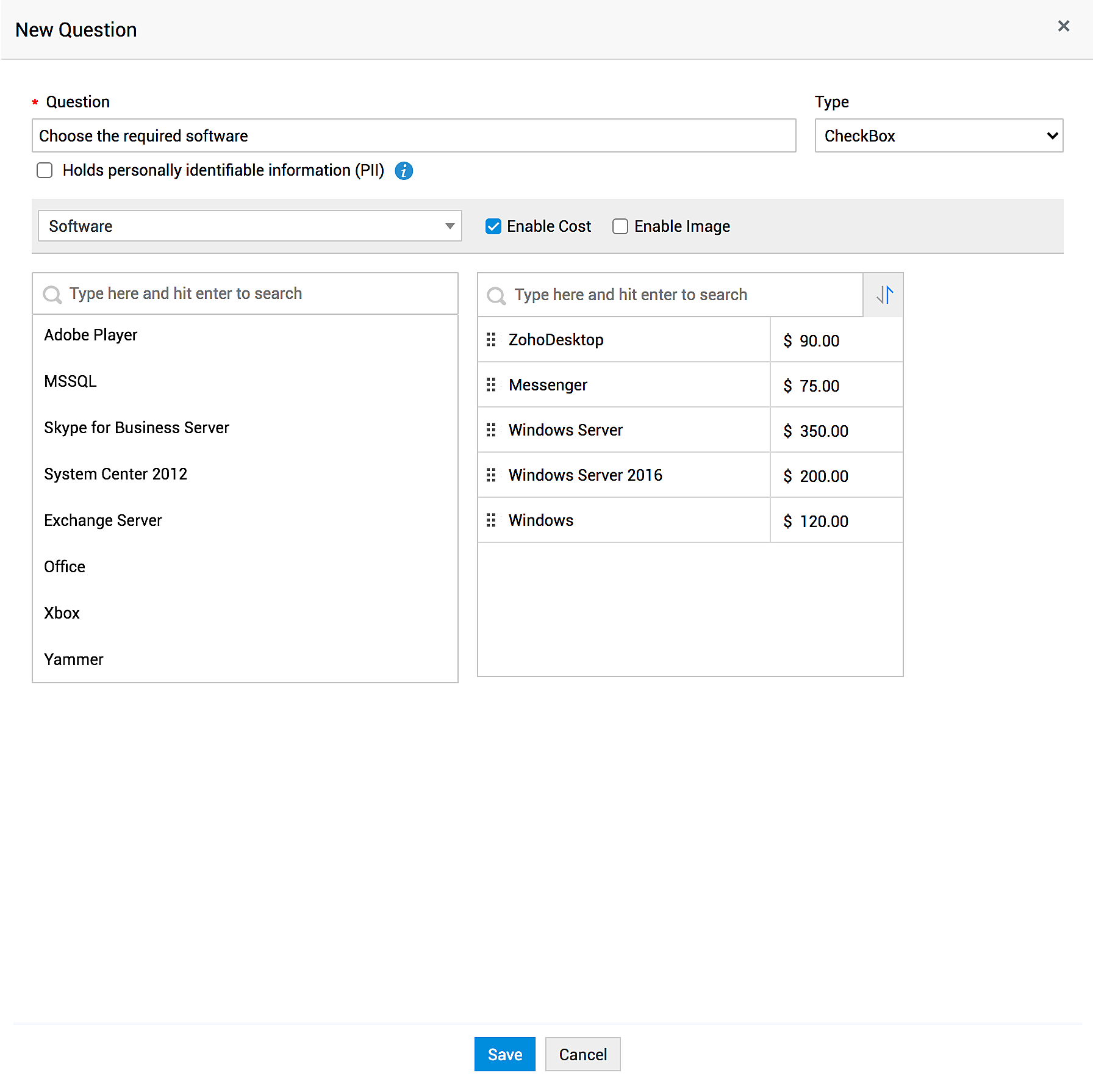 Select Enable Cost to display the cost of each resource to your users. If selected, you must add the cost for at least one resource option.